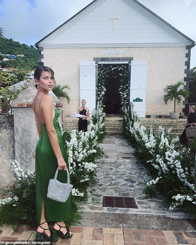 Georgia Fowler diện bộ bikini màu tím nhạt nổi bật trên biển St. Bart.