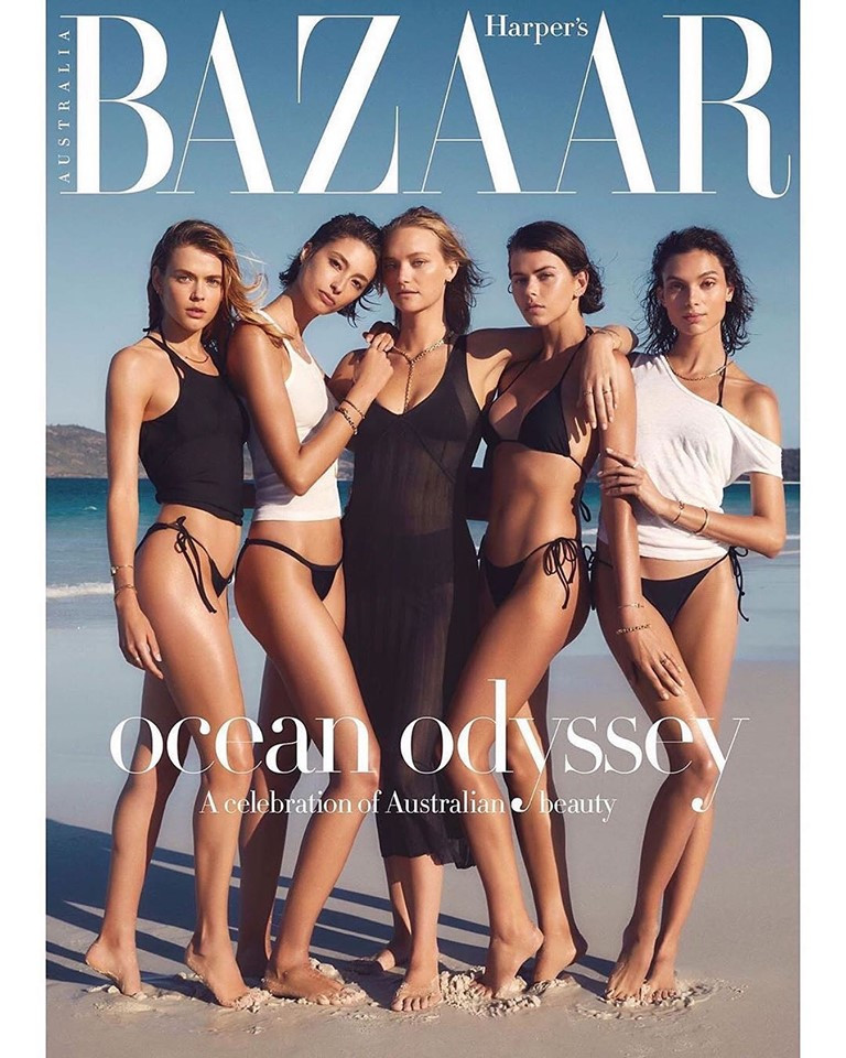 Người mẫu sinh năm 1992 mặt mộc bán nude táo bạo trên bìa tạp chí Harper's Bazaar Úc số mới.
