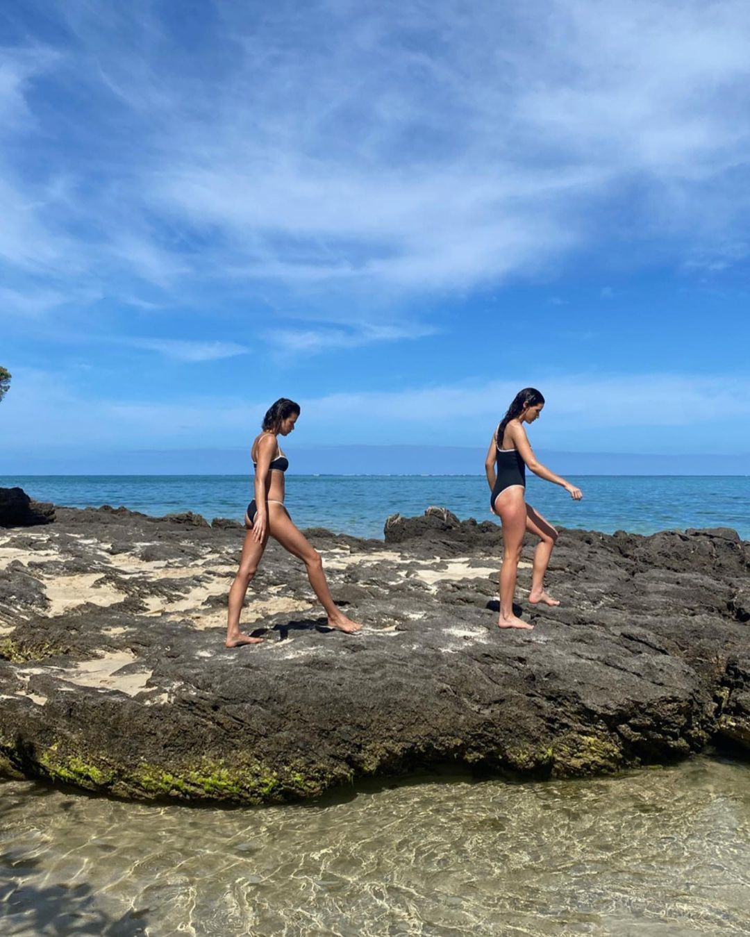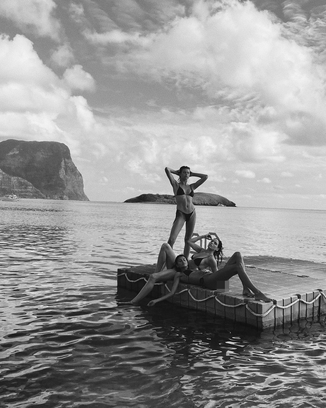 Ba mỹ nhân chân dài có buổi chụp hình áo tắm giữa biển.