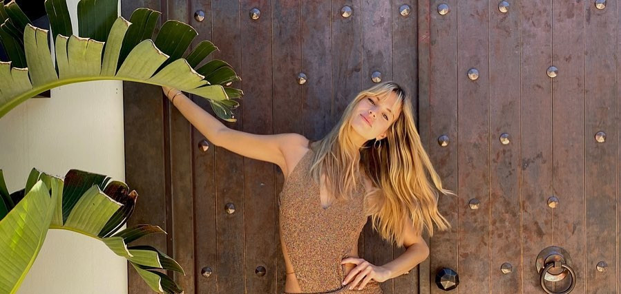 Trên trang cá nhân, nàng mẫu tóc vàng đăng loạt ảnh diện áo tắm cắt cúp táo bạo do "chân dài" Devon Windsor thiết kế.