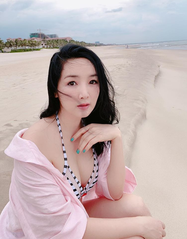 Trong ảnh, Hoa hậu Đền Hùng diện bikini gợi cảm, khoe vòng 1 phồn thực với chiếc eo thon gọn.