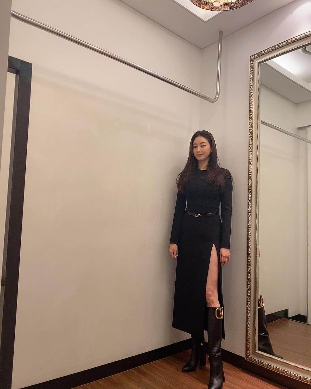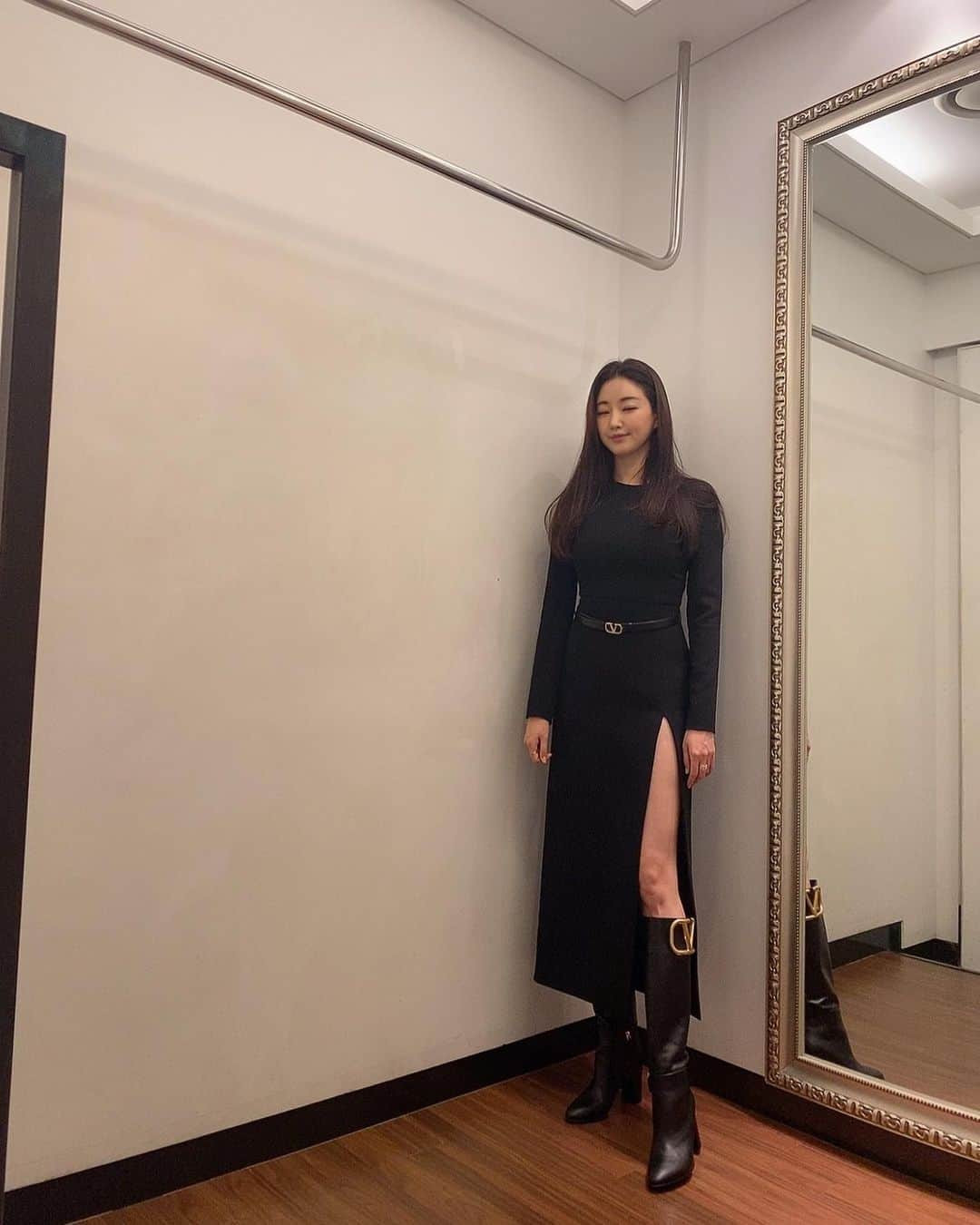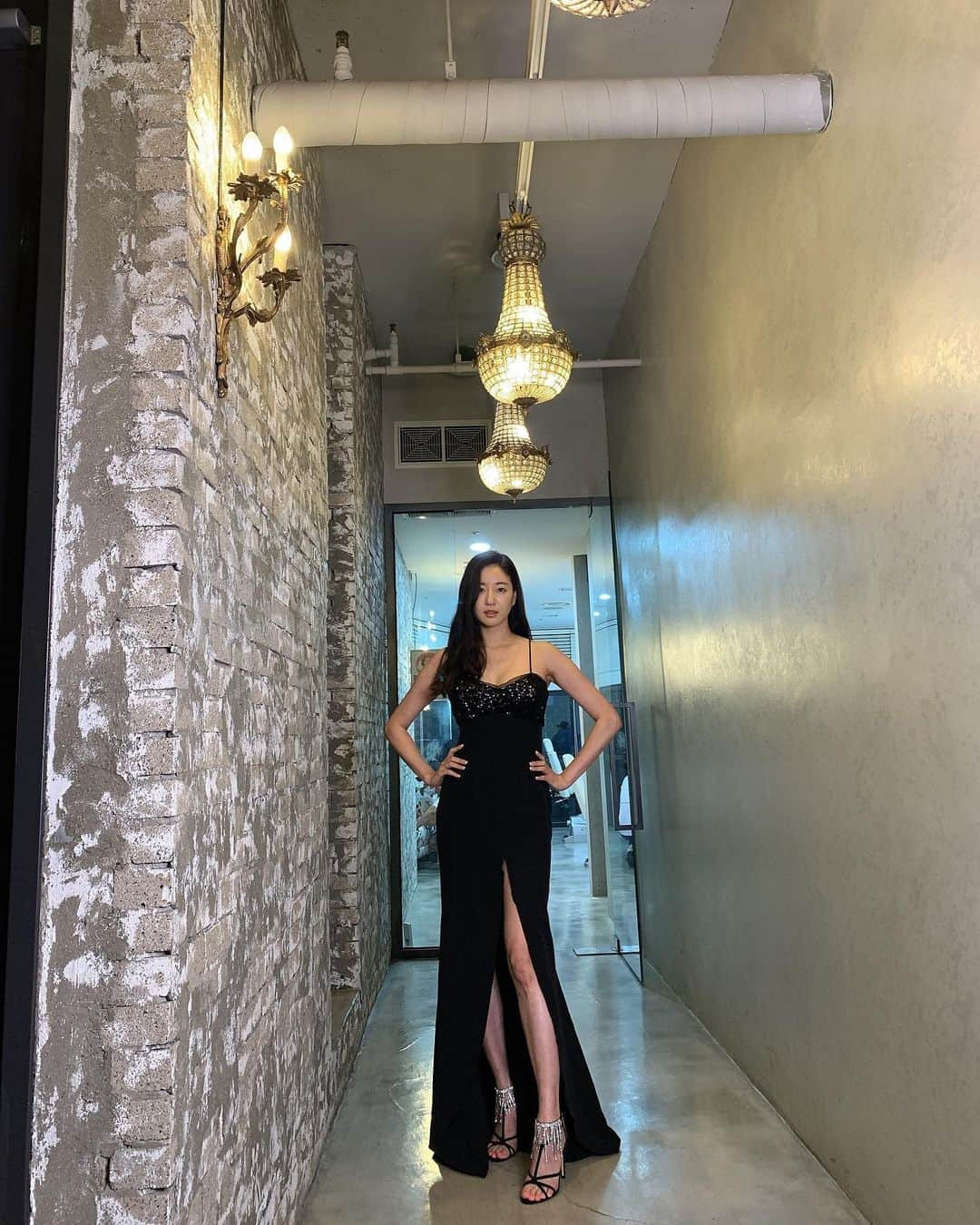 Mỹ nhân xứ kim chi diện váy đen xẻ cao táo bạo, khoe khéo đôi chân dài và vòng eo thon.