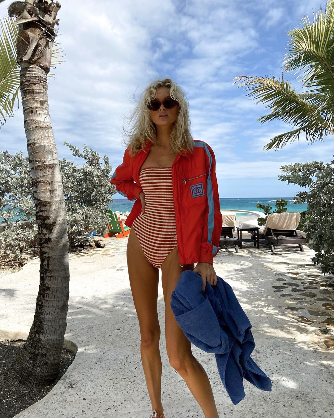 Mới đây, Elsa Hosk chia sẻ loạt ảnh bikini trên trang Instagram cá nhân. Trong ảnh, mỹ nhân 9x mặc bikini hai mảnh màu trắng, khoe thân hình mảnh mai.