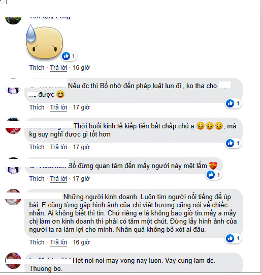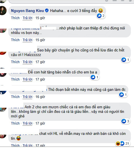 Dưới phần bình luận, nhiều nghệ sĩ và người hâm mộ tỏ ra đồng cảm với Hoài Linh và khuyên anh nên nhờ pháp luật xử lí.