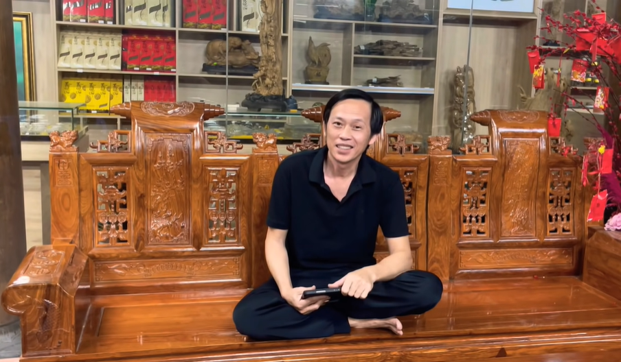 Hoài Linh đang nói thì con trai nuôi tới. Vừa nhìn thấy con trai nuôi, Hoài Linh đã hào hứng hỏi: "Mày mua mic cho ba rồi đúng không? Thế thì đưa mic ra luôn đi để ba còn đập hộp cho khán giả xem. Mà con mua loại mic nào thế, loại lớn hay nhỏ?".