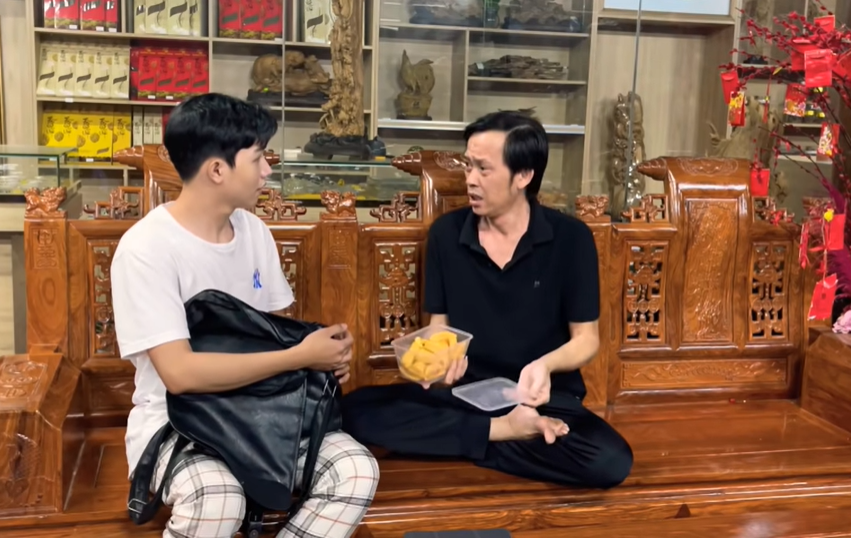 Nói rồi, con trai nuôi rút ra một hộp mít nửa kg bóc sẵn. Vừa nhìn thấy, Hoài Linh ngỡ ngàng thốt lên: "Trời ơi, sao con lại mua mít? Ba bảo con mua mic thu để cài vào người, quay YouTube cho rõ. Ba quay YoutTbe mọi người góp ý phải mua mic để quay cho rõ hơn. Vì thế nên ba mới điện cho con nhờ mua hộ vì con giỏi công nghệ. Con nghe kiểu gì mà thành mua mít về ăn là thế nào? Mít này nhà mình trồng cả đống, ăn tràn họng rồi còn mua về làm gì nữa?".