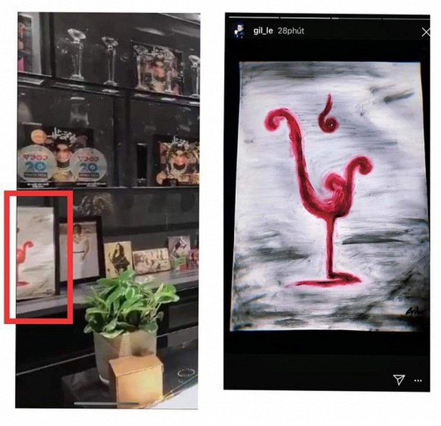 Cụ thể, khi ống kính quay lại khu vực nữ ca sĩ trưng bày các cúp, giải thưởng âm nhạc cùng nhiều chứng nhận danh giá, các fans phát hiện ra bức tranh lấp ló trên kệ từng được Gil Lê đăng tải trước đó. Điều này càng khiến cho nghi vấn hai nữ nghệ sĩ hẹn hò và đã dọn về sống chung được chia sẻ cách đây ít lâu có cơ sở hơn.