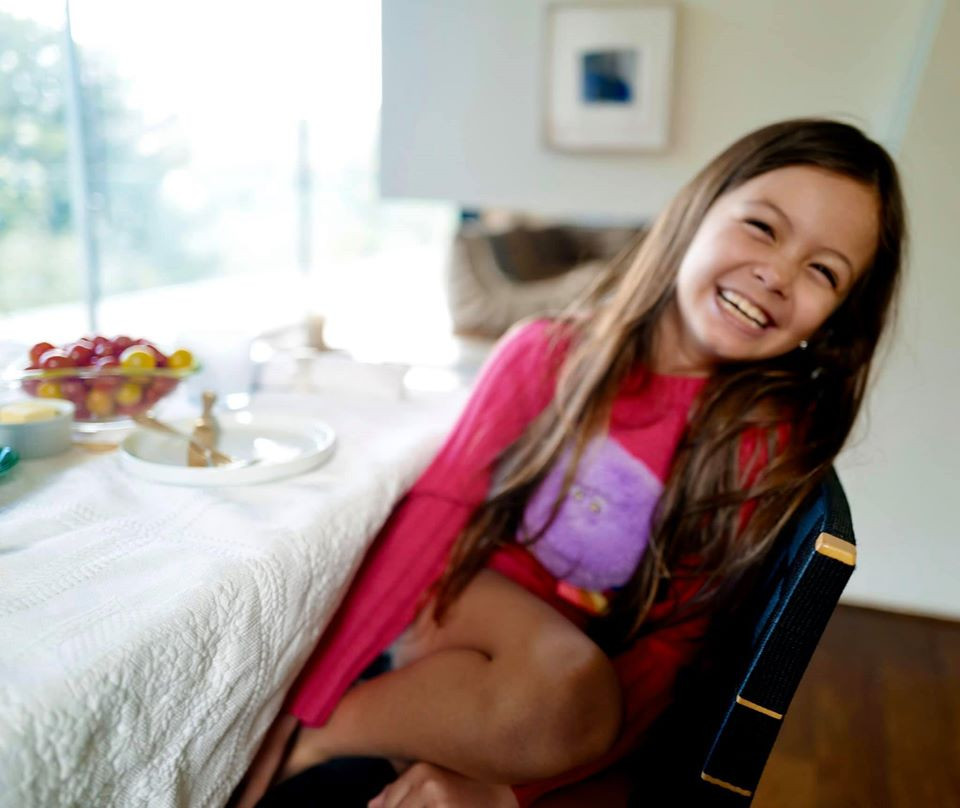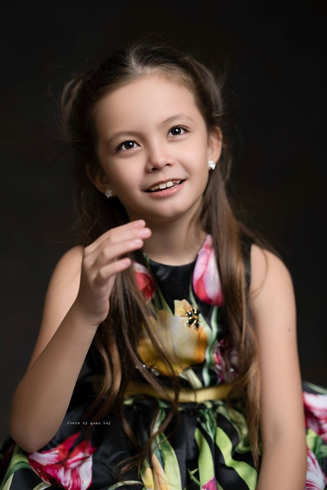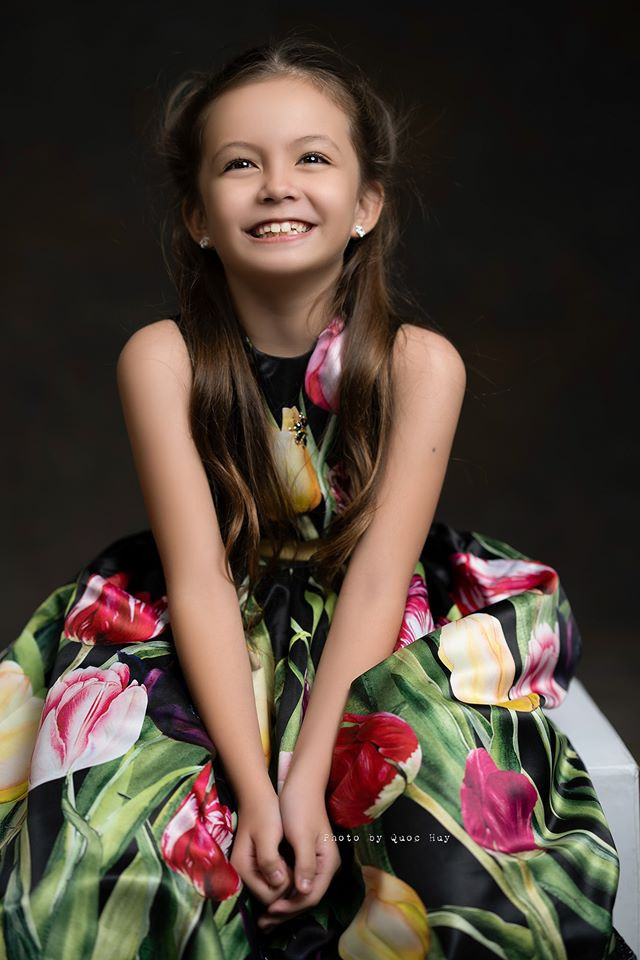 Dù mới 8 tuổi nhưng cô bé đã khá cao lớn và sở hữu đôi chân thon dài.