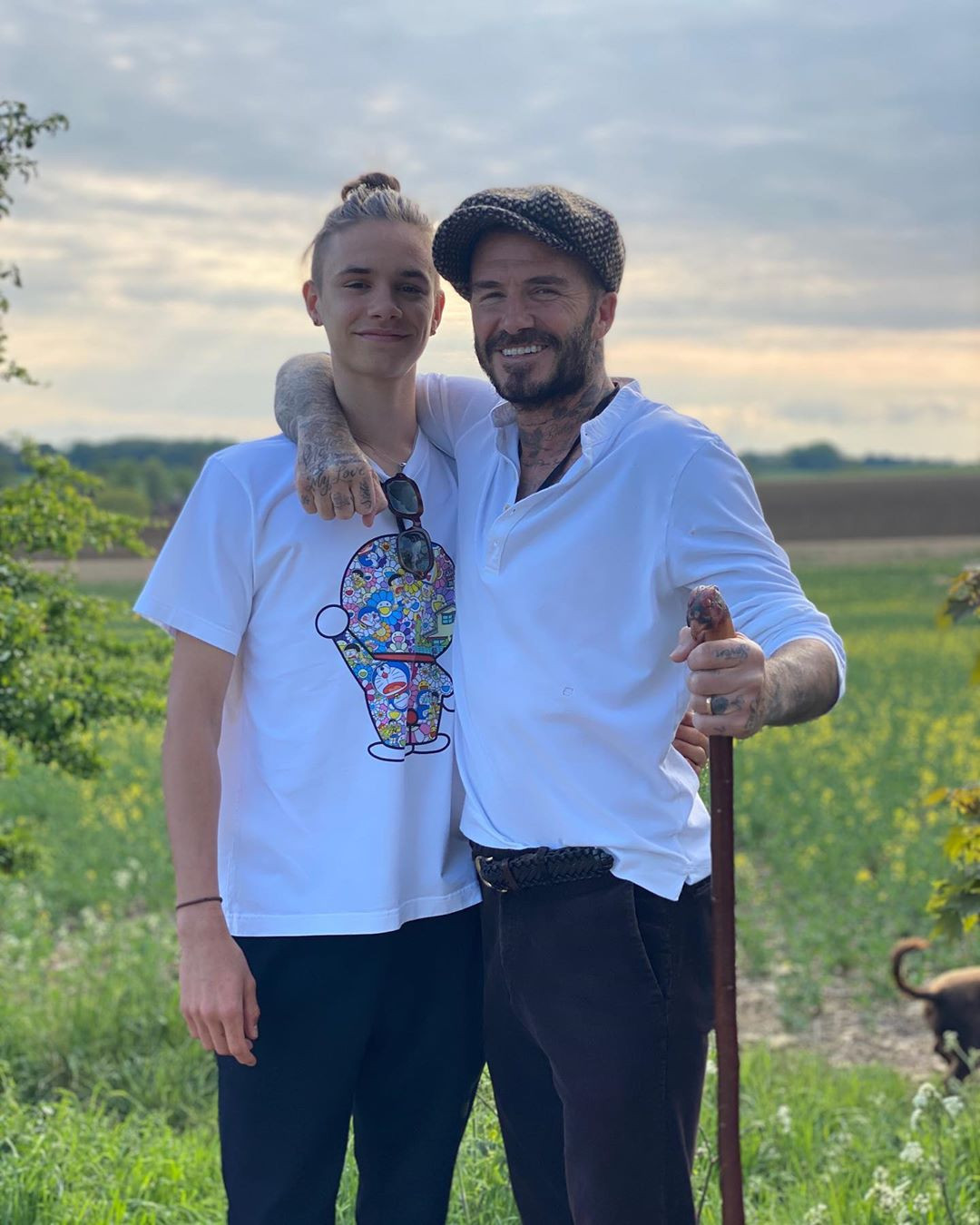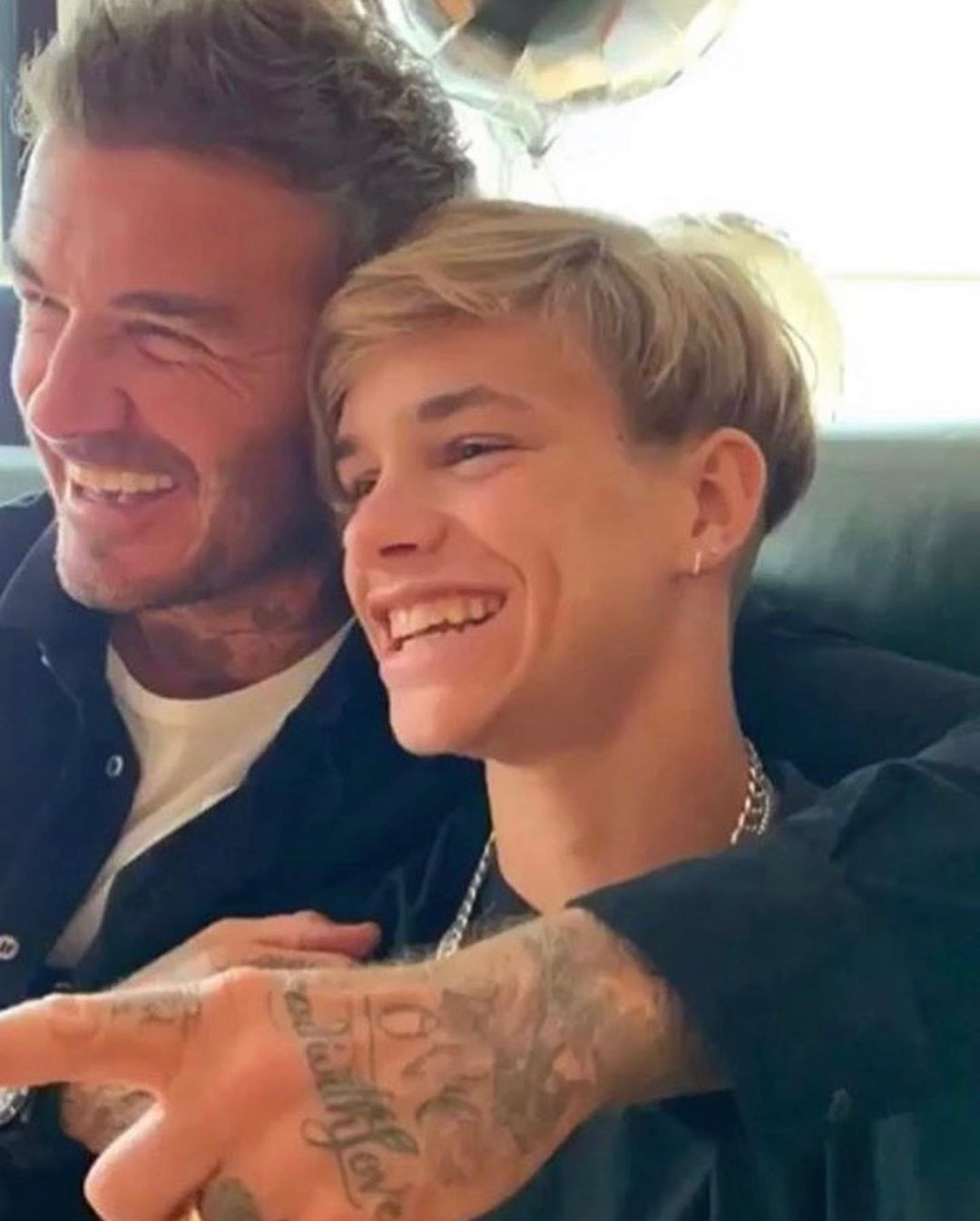 Cậu nhóc 17 tuổi chững chạc bảnh bao bên bố David Beckham.