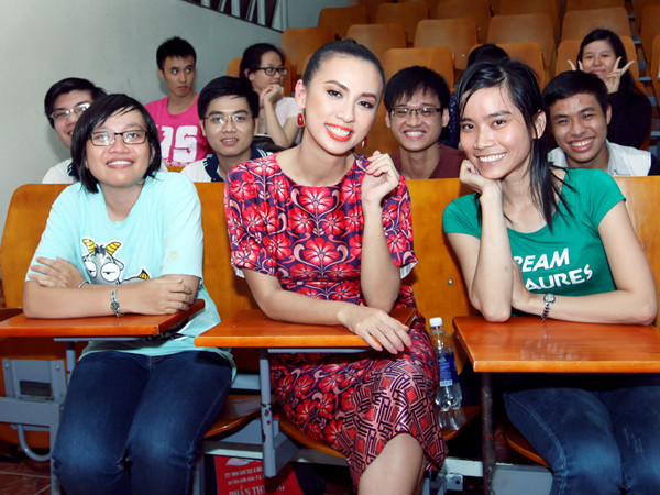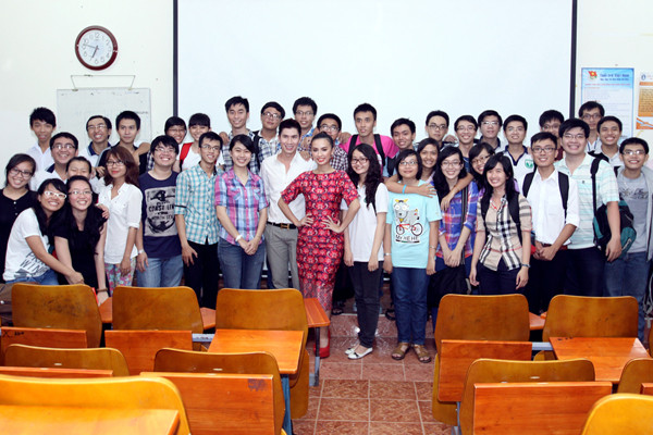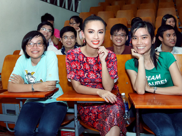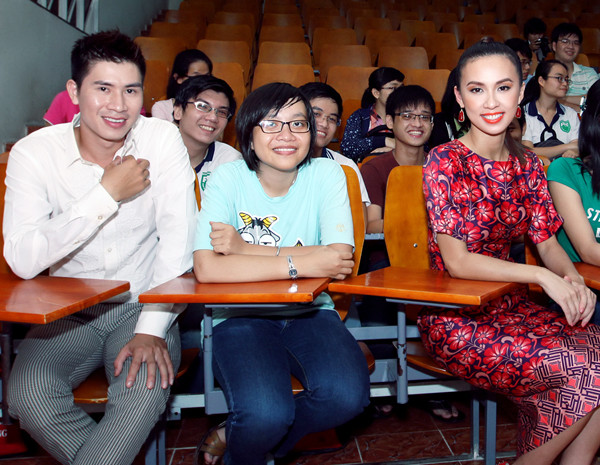 Các bạn sinh viên trường ĐH Y Dược không chỉ khâm phục trước tài năng của Huyền Ny mà còn yêu mến cô bởi thái độ cởi mở, thân thiện khi trả lời câu hỏi của từng bạn.