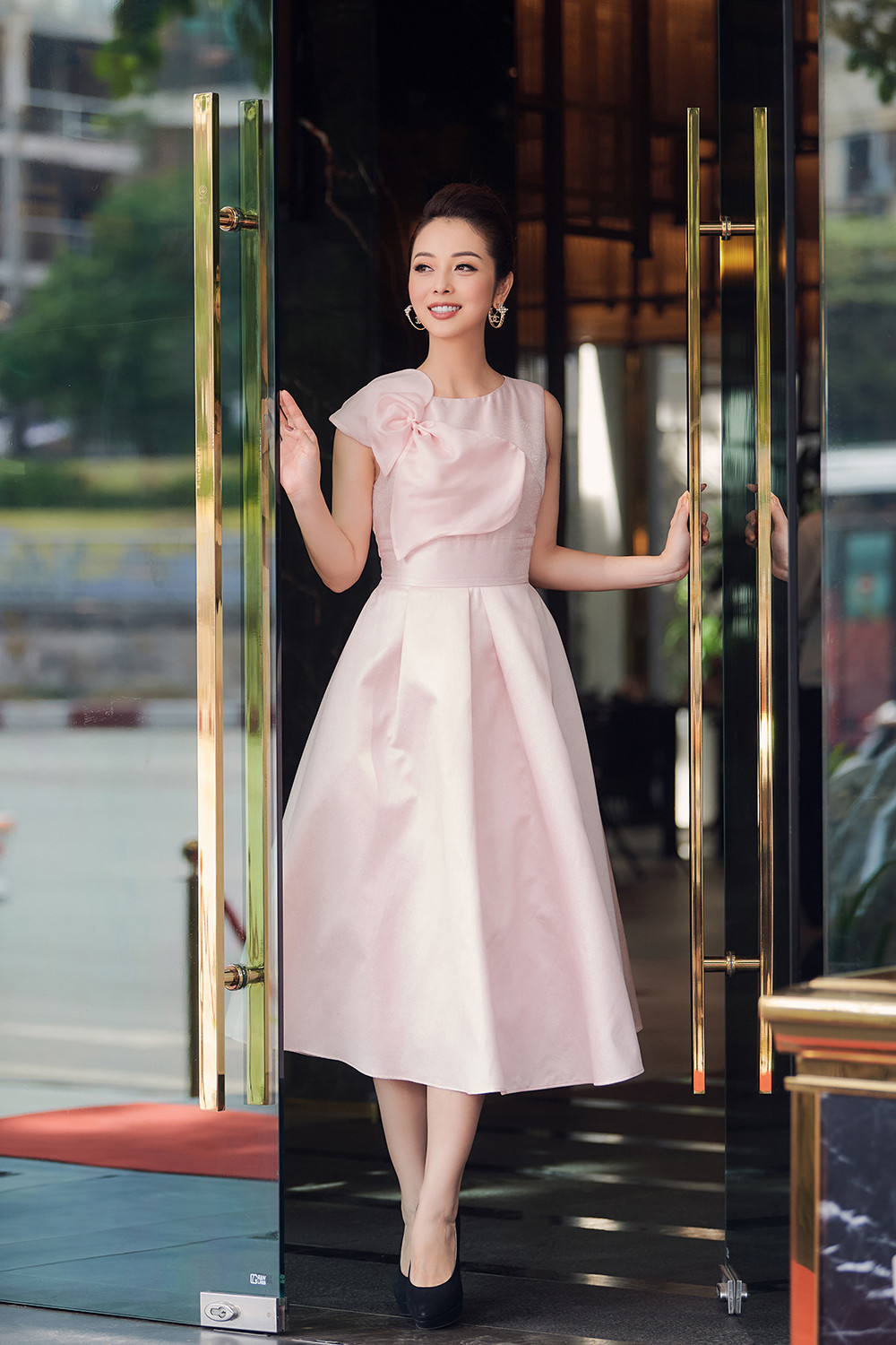 Sáng 20/7, hoa hậu Jennifer Phạm xuất hiện tại một sự kiện ở Hà Nội với vai trò MC. Cô diện đầm hồng pastel ngọt ngào và kiêu kỳ như một nàng tiểu thư.