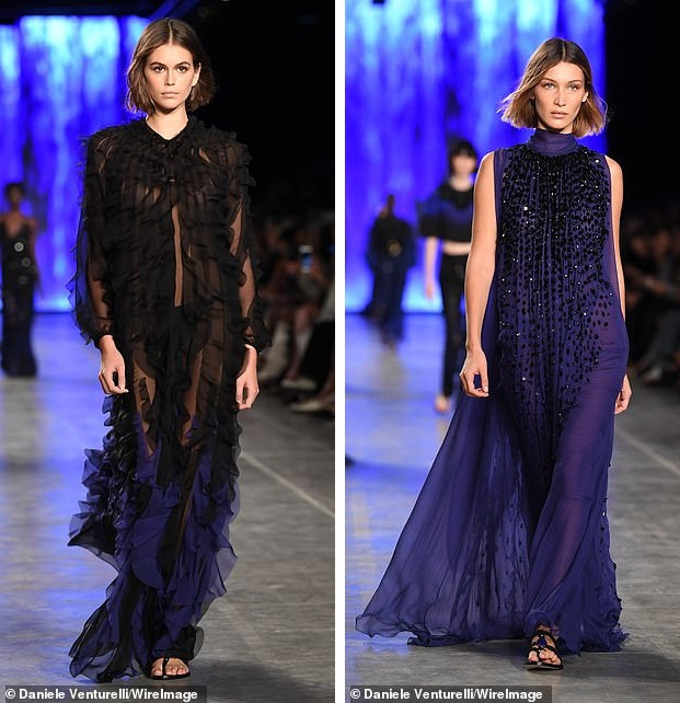 Kaia Gerber và Bella Hadid là hai gương mặt nổi bật trong show diễn ra mắt bộ sưu tập Xuân/Hè 2020 của thương hiệu thời trang Ý Alberta Ferretti tại Tuần lễ Thời trang Milan 2019.