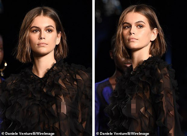 Con gái của "huyền thoại" Cindy Crawford lộ cả phần nhạy cảm của vòng một vì lớp vải xuyên thấu "mặc như không".
