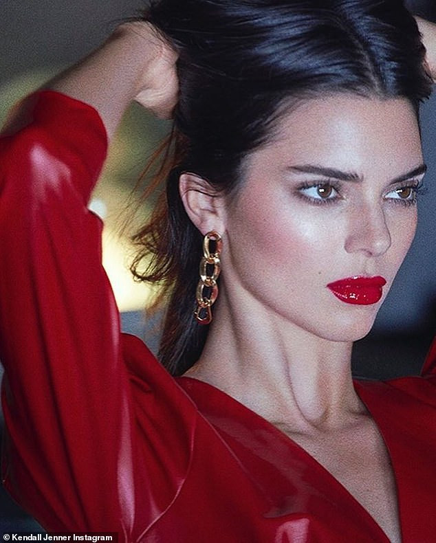 Môi son đỏ càng làm tôn vẻ đẹp sang trọng yêu kiều của Kendall Jenner.