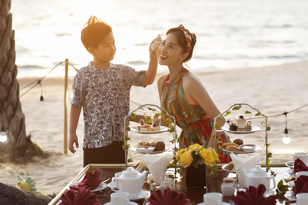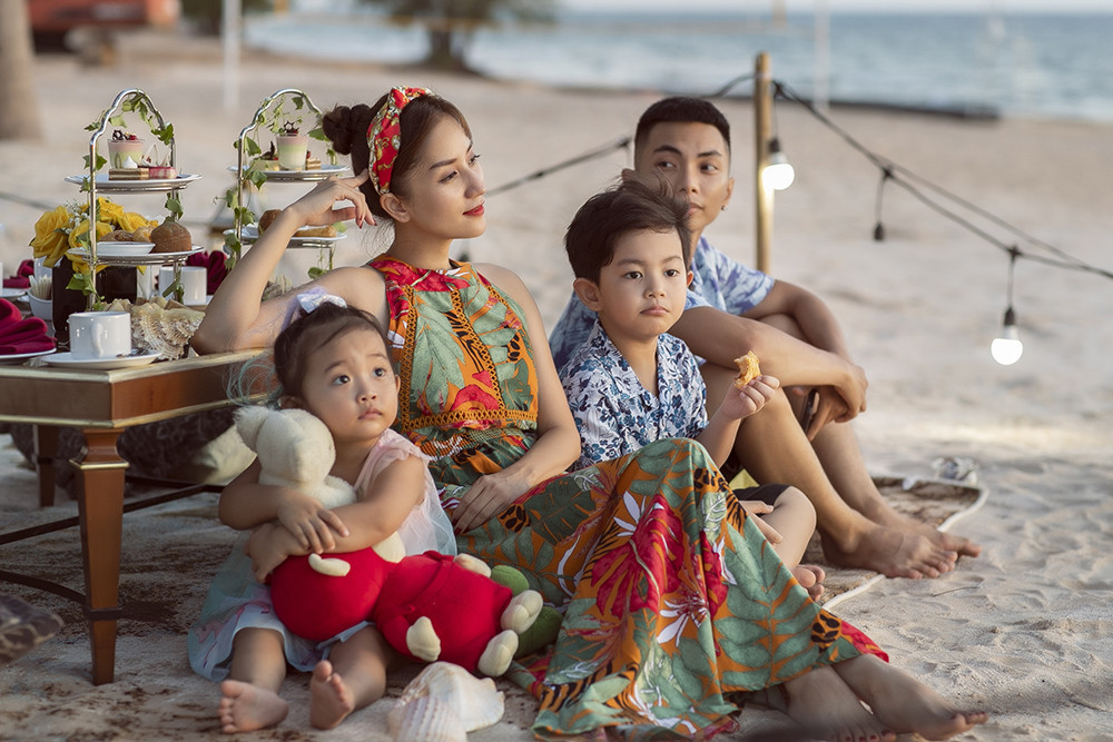 Phan Hiển còn sắp xếp để cả gia đình có bữa tiệc trà lãng mạn trên bãi cát trong lúc hoàng hôn buông xuống.