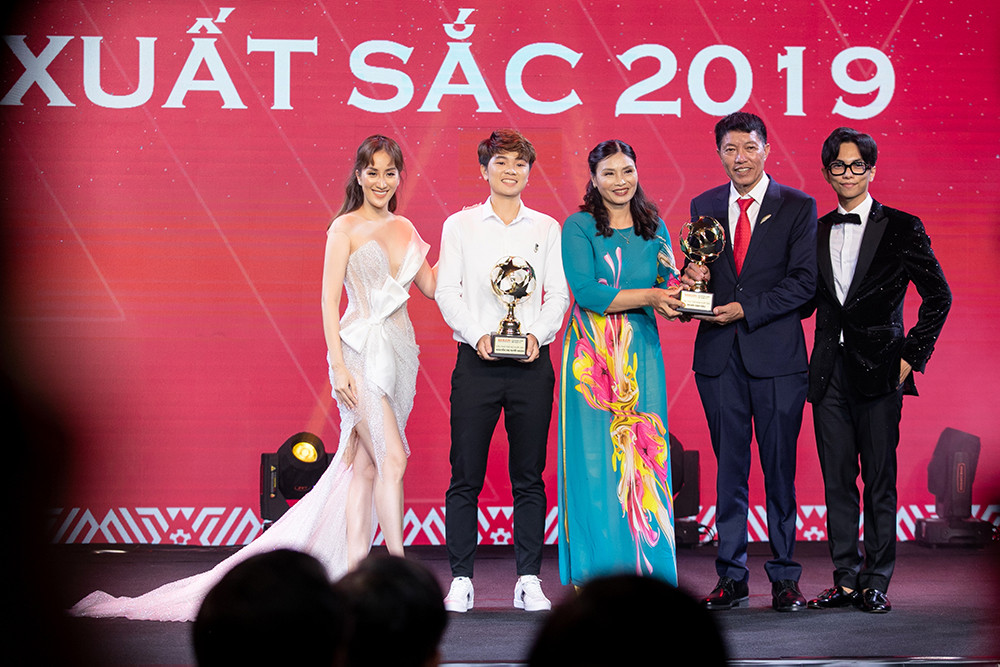 Tối qua, cả hai đã xướnng tên Nguyễn Thị Tuyết Ngân, Đoàn Văn Hậu ở hạng mục ‘Cầu thủ trẻ nữ hay nhất năm 2019’, ‘Cầu thủ trẻ nam hay nhất 2019’ và trao cúp cho hai người chiến thắng. Đoàn Văn Hậu vắng mặt tại sự kiện nên bố mẹ anh đã lên sân khấu nhận cúp thay con trai.