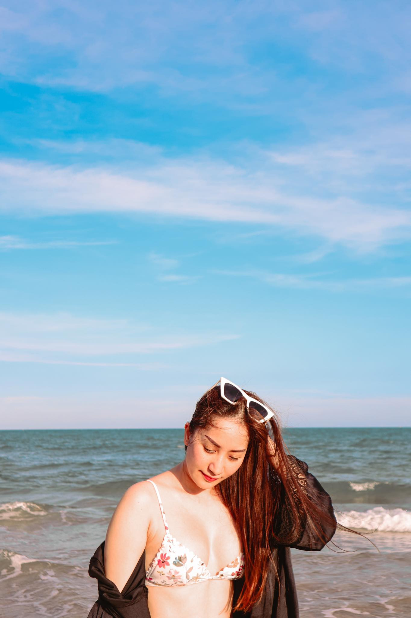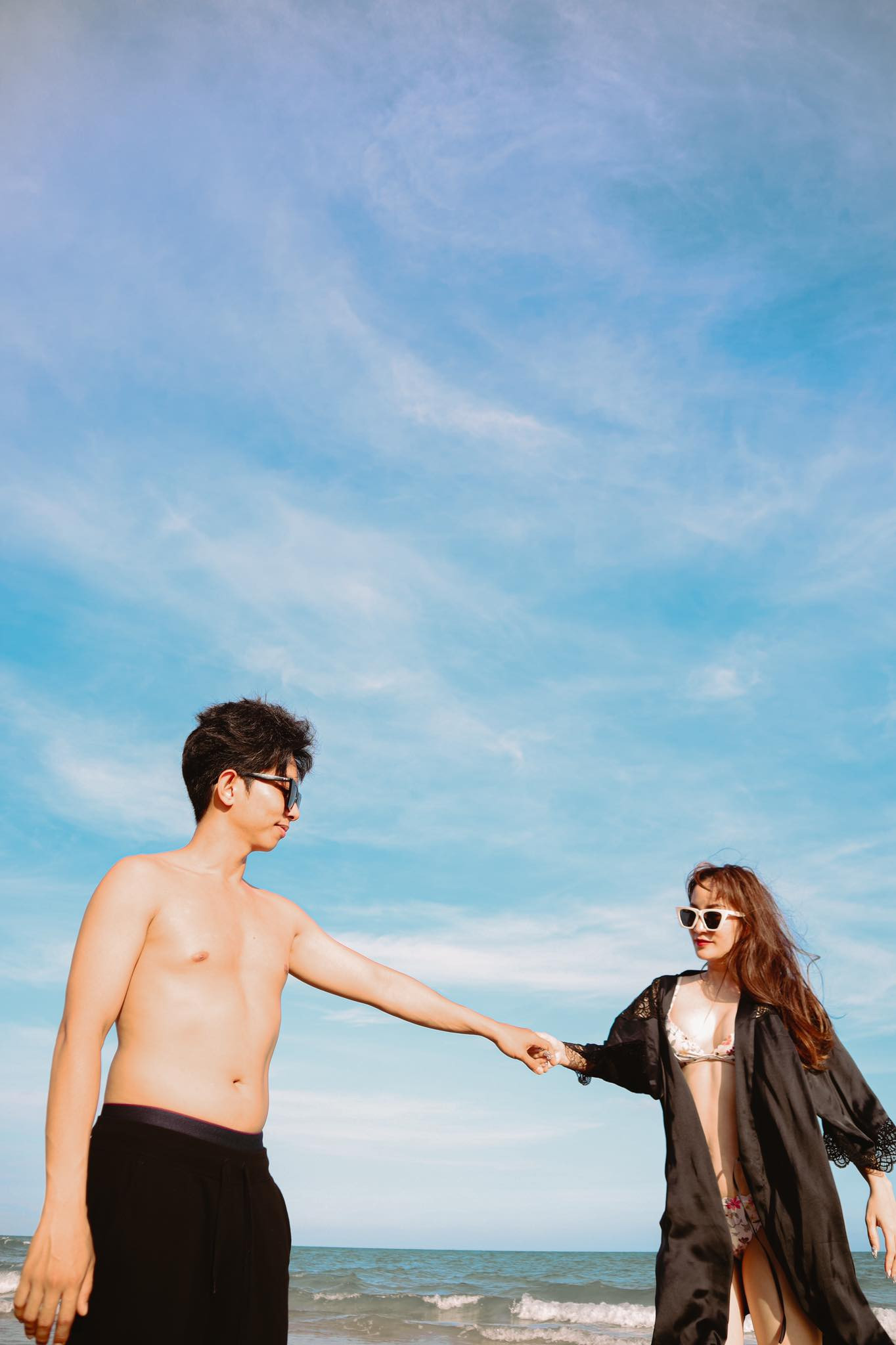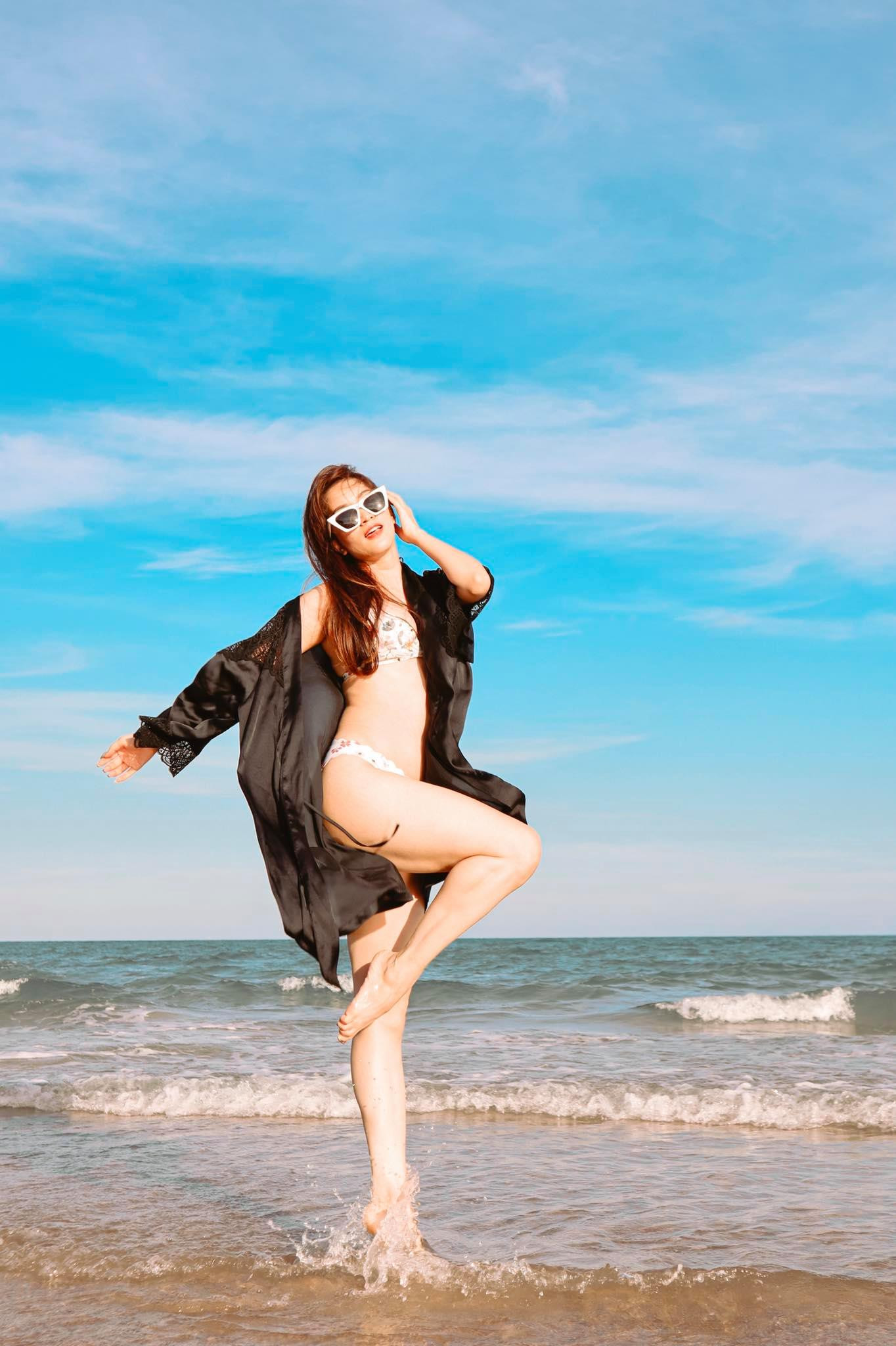 Cũng trong dịp đến Hồ Tràm nghỉ dưỡng, cả gia đình Khánh Thi – Phan Hiển tranh thủ ghi lại những khoảnh khắc trên bãi biển.