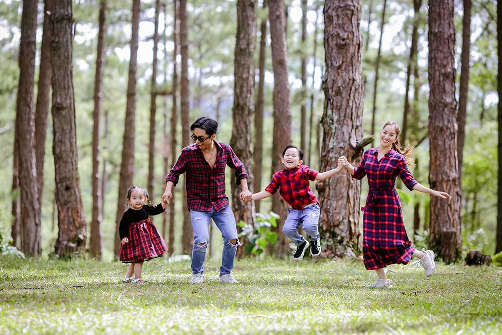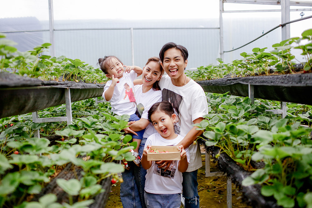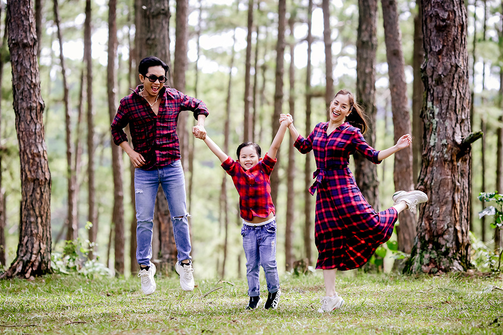 Lần này, cả nhà Khánh Thi được người bạn thân photographer Thuỳ Dung sắp xếp đưa đi chụp ảnh kỷ niệm tại đồi thông, vườn dâu, vườn hoa…