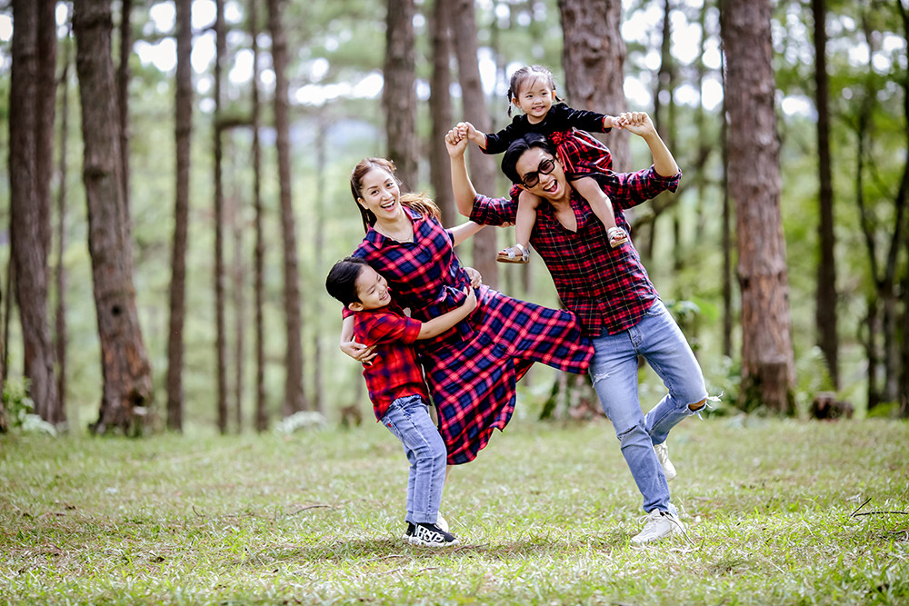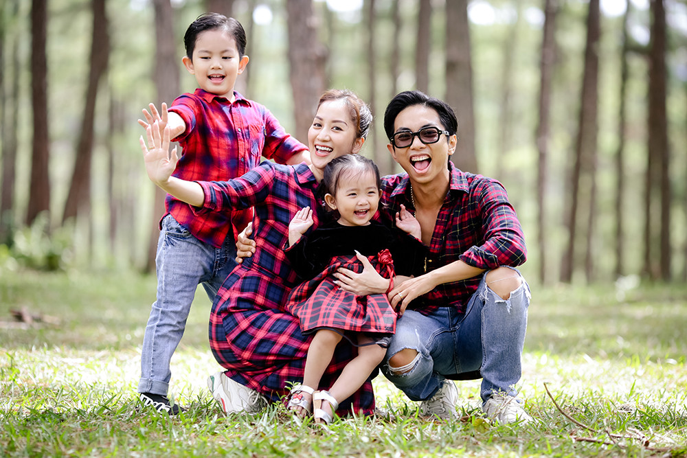 Bản thân vợ chồng Khánh Thi liên tục lôi kéo hai con đùa nghịch trước ống kính, biến buổi chụp hình thành chuyến dã ngoại vui vẻ để hai bé không cảm thấy chán nản.