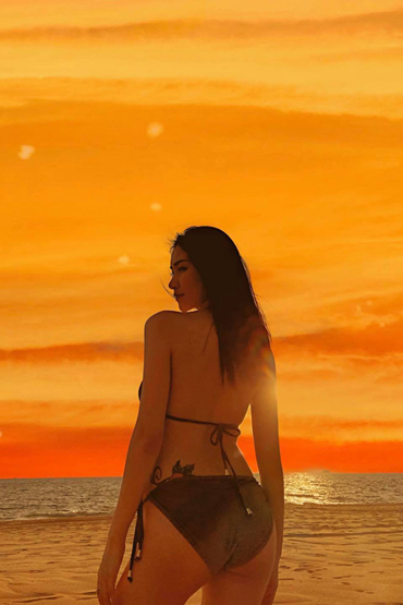 Mới đây, nữ ca sĩ gốc Bắc Ninh khiến nhiều người sửng sốt khi chia sẻ ảnh diện bikini khoe thân hình gợi cảm và lộ hình xăm lớn ở vòng 3. Sau khi đăng tải, hình ảnh này nhận được rất nhiều lượt yêu thích của mọi người, trong phần bình luận, các ý kiến khen ngợi nữ ca sĩ ngày càng mặn mà và quyến rũ.