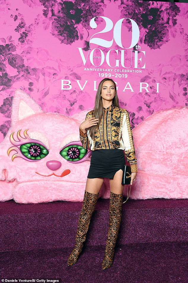 Hôm thứ Tư (18/9, giờ địa phương), Irina Shayk tham dự bữa tiệc kỷ niệm 20 năm của Vogue Nhật Bản tại Milan, Ý.