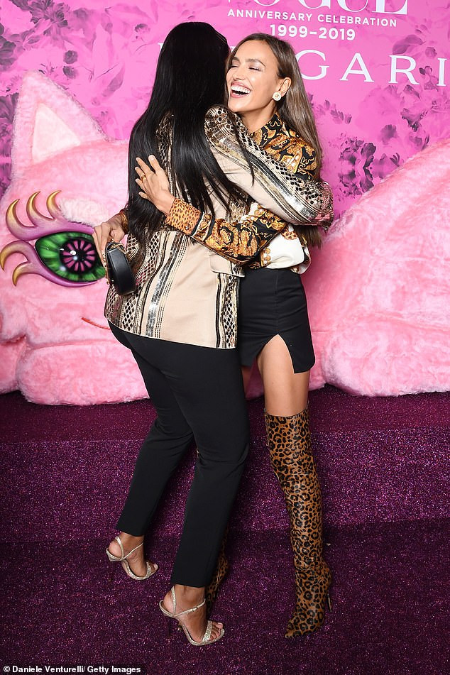 Tại sự kiện, Irina tái ngộ người bạn Sabrina Elba. Hai phụ nữ trao nhau chiếc ôm thân thiết.