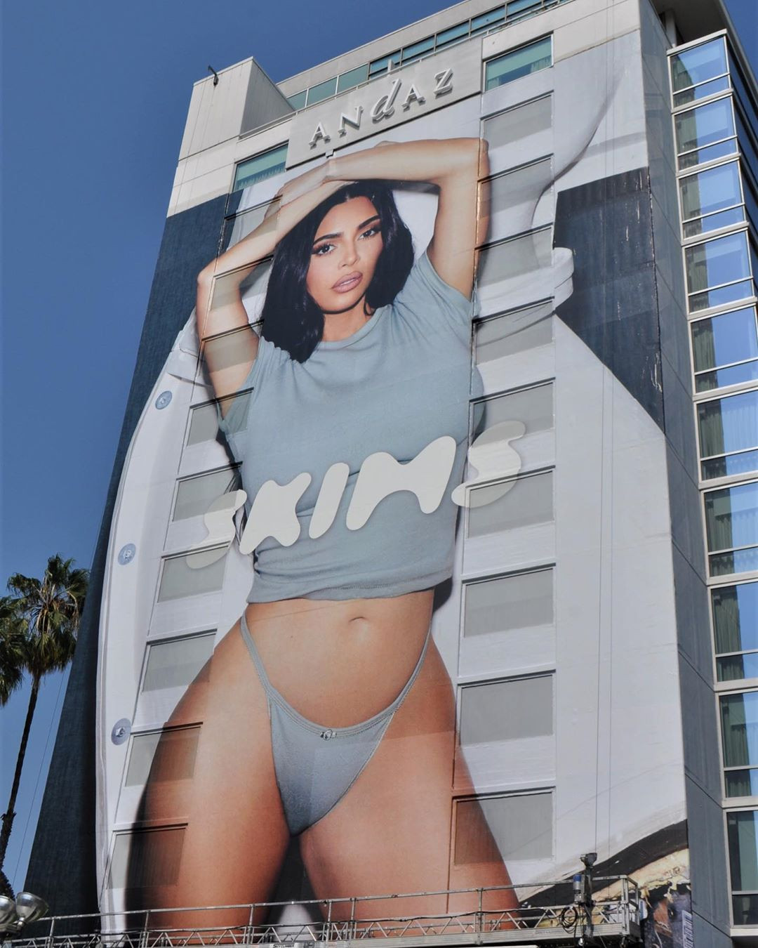 Poster quảng cáo lớn của Kim với nội y do chính mình thiết kế, xuất hiện trên đường phố ở Mỹ.