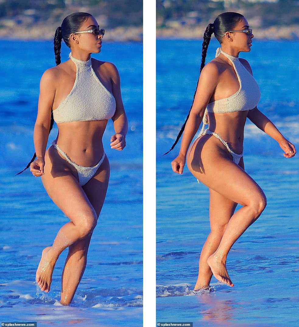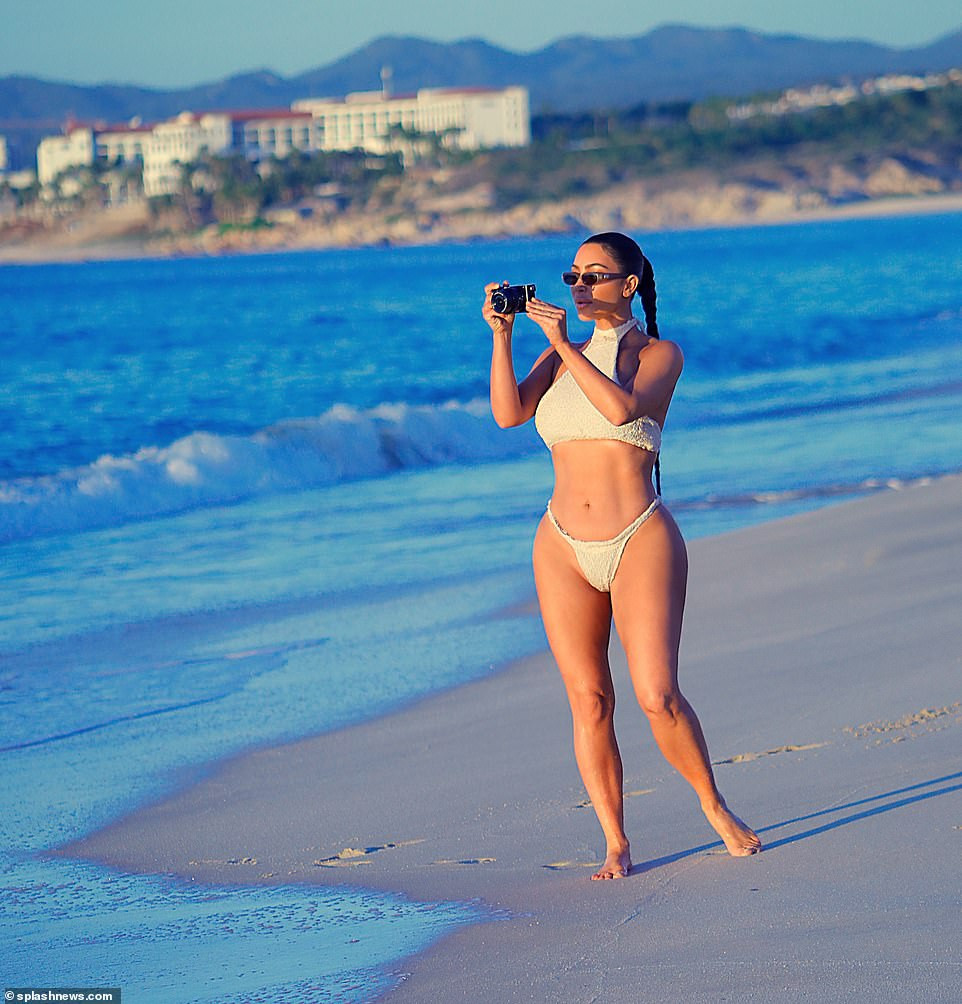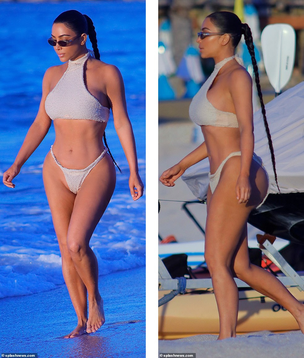Kim Kardashian đang có chuyến nghỉ dưỡng xa xỉ ở thành phố biển Cabo San Lucas, Mexico. Mới đây, cô được nhìn thấy đi dạo trên bãi biển trong bộ bikini hai mảnh bắt mắt vào lúc hoàng hôn.