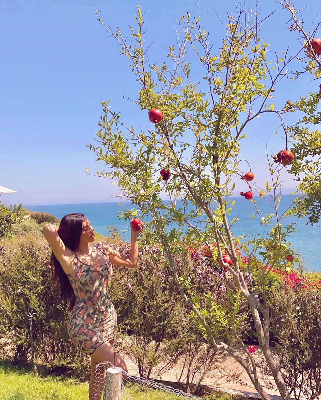 Trong bức ảnh mới đăng trên trang cá nhân mới đây, Kim Kardashian khoe dáng bên cây lựu giữa khung cảnh thiên nhiên ngập tràn nắng gió biển.