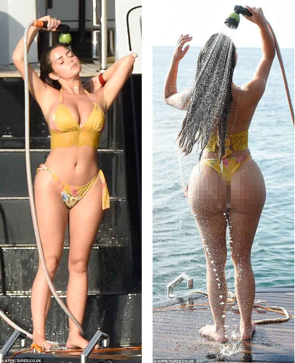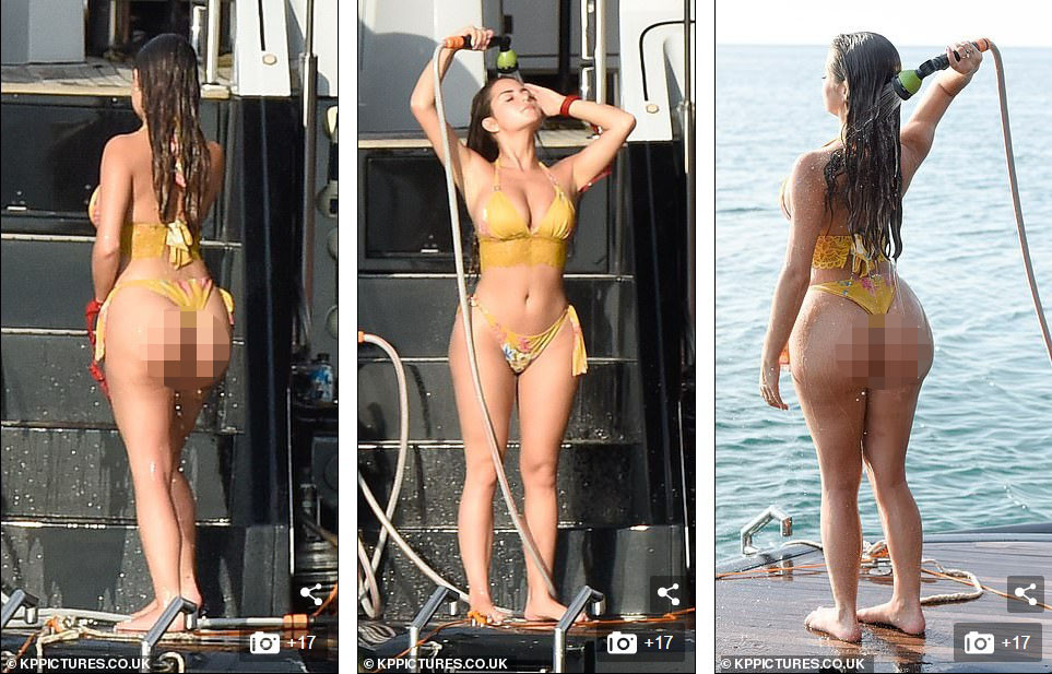 Cô được nhìn thấy "thả dáng" với bikini vàng hoạ tiết hoa trên du thuyền sang trọng.