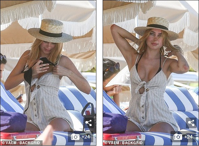Hôm thứ Hai (13/1, giờ địa phương), Kimberley Garner được nhìn thấy cùng bạn bè và chó cưng Sasha trên bãi tắm thuộc khách sạn 5 sao Soho Beach House ở Miami, Florida, Mỹ.