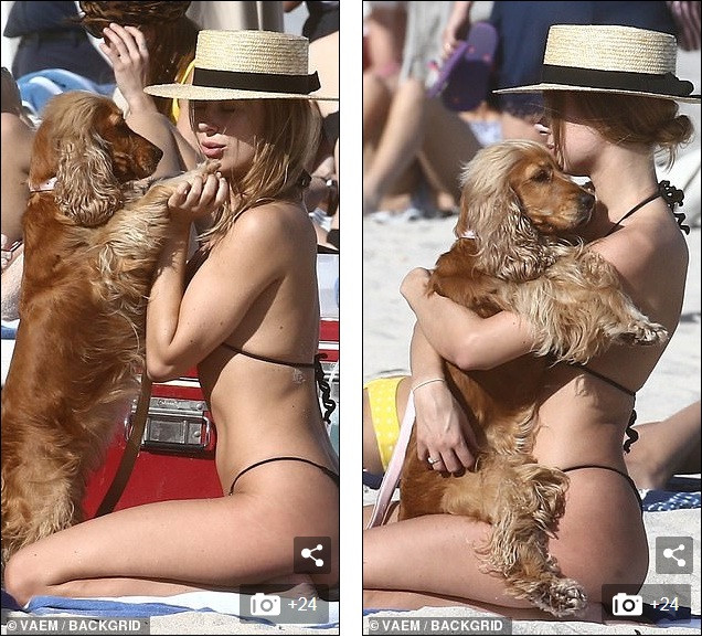 Kimberley đặc biệt quấn quýt Sasha. Cô liên tục đùa giỡn, ôm ấp thú cưng trên bãi biển.