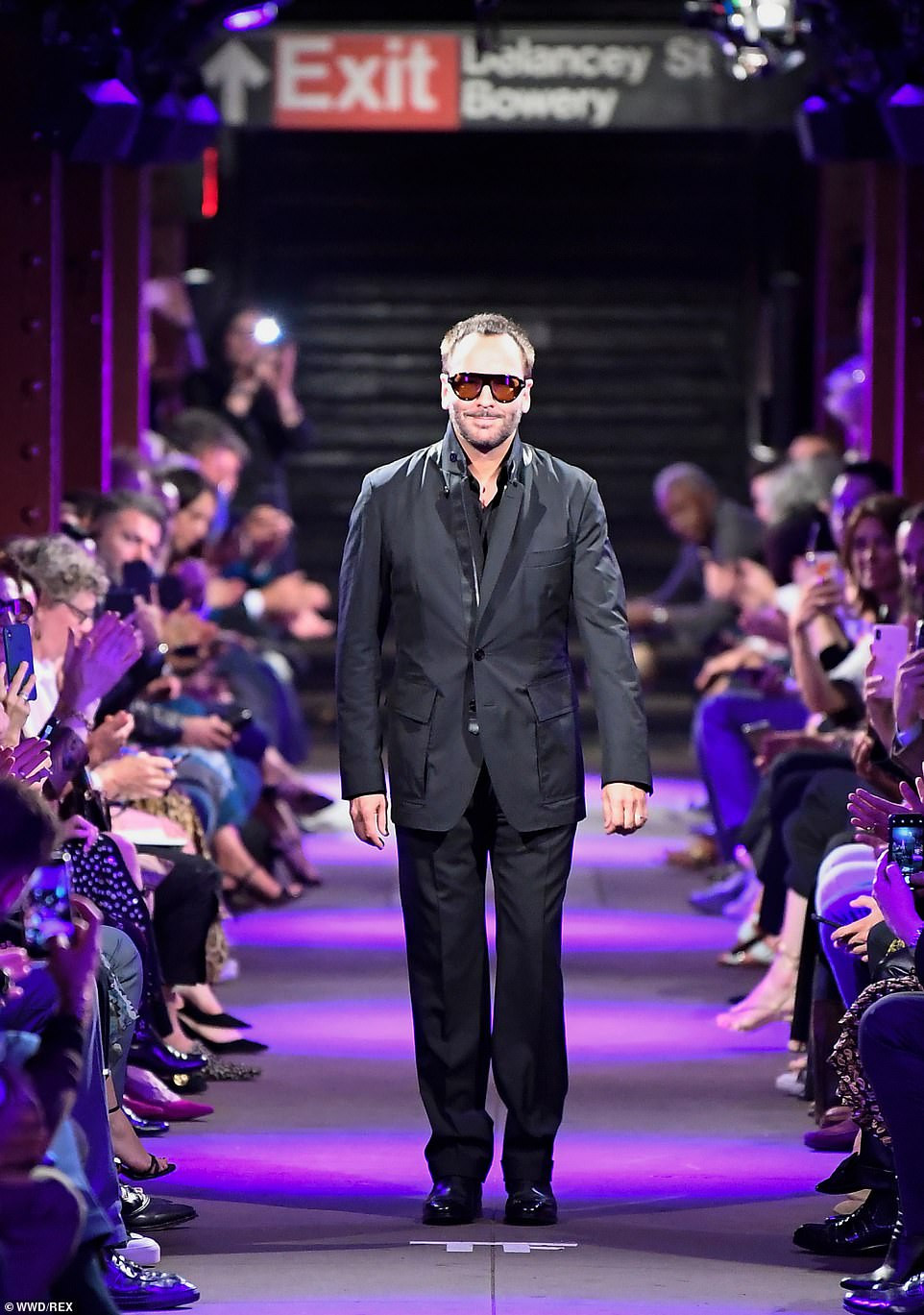 Nhà thiết kế Tom Ford chào khán giả sau khi kết thúc buổi trình diễn. Ông vừa trở thành Chủ tịch Hội đồng các nhà thiết kế thời trang của Mỹ hồi tháng 6. Và điều đầu tiên ông làm trên cương vị mới là rút ngắn Tuần lễ Thời trang New York.