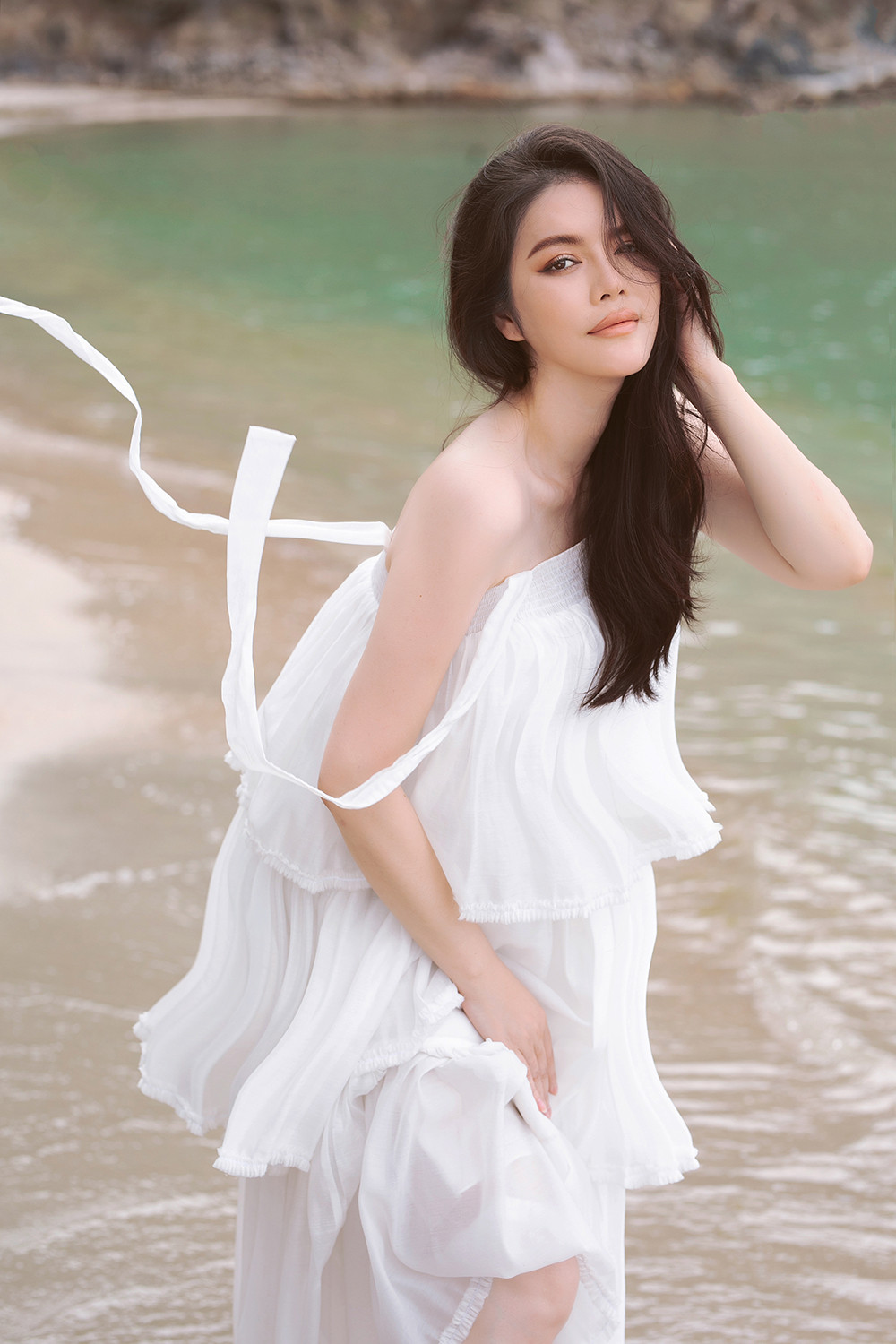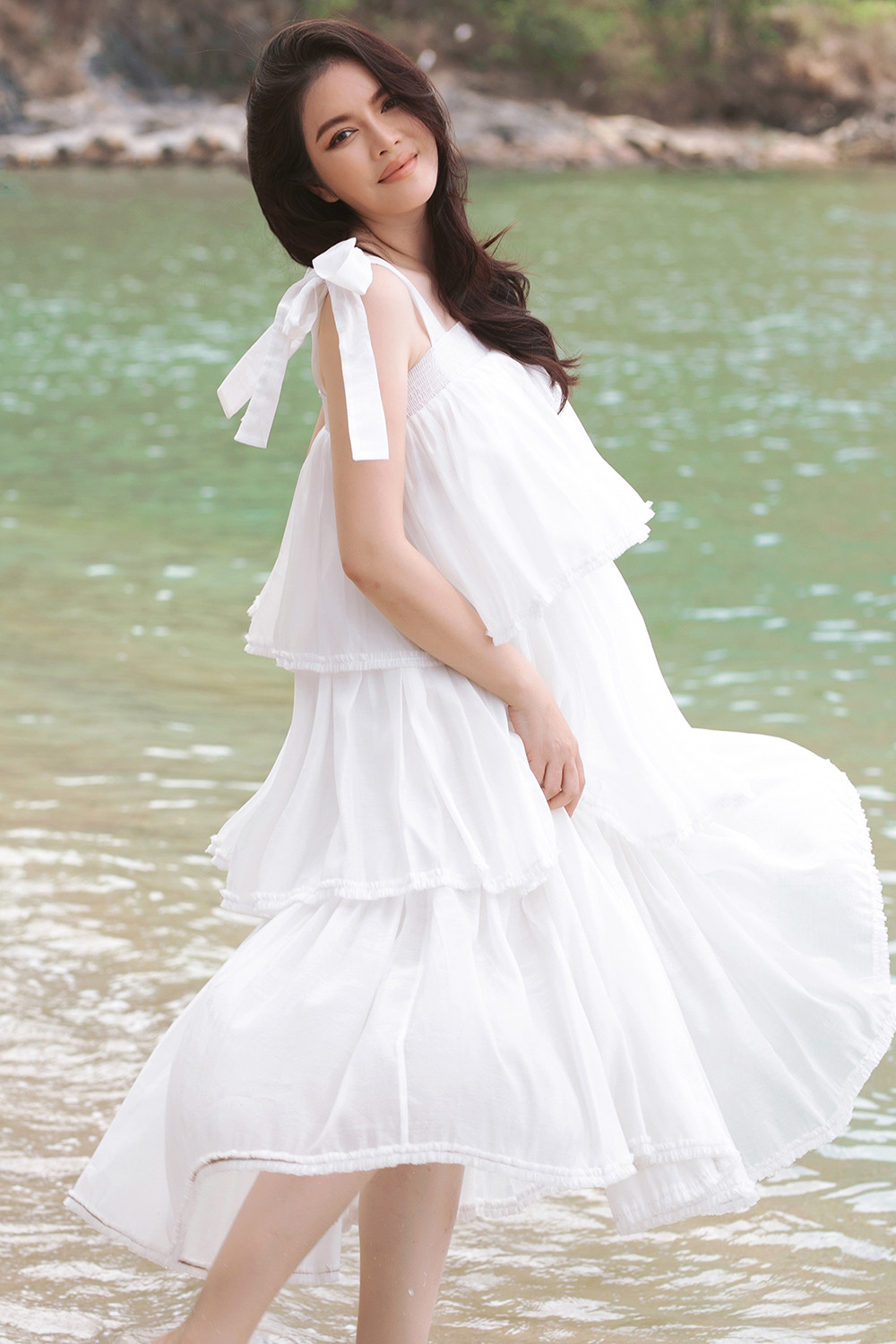 Những chiếc váy dài màu trắng không chỉ giúp người đẹp Vũng Tàu trông nhẹ nhàng, bay bổng mà còn giúp tinh thần thư giãn hơn.
