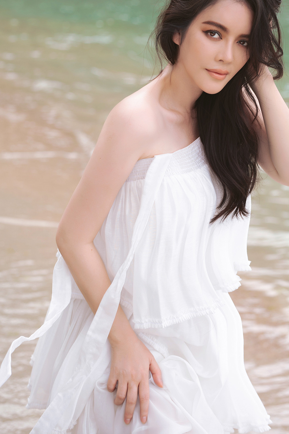 Người đẹp khoe làn da trắng mịn màng cùng gương mặt đẹp trang điểm nhẹ nhàng.