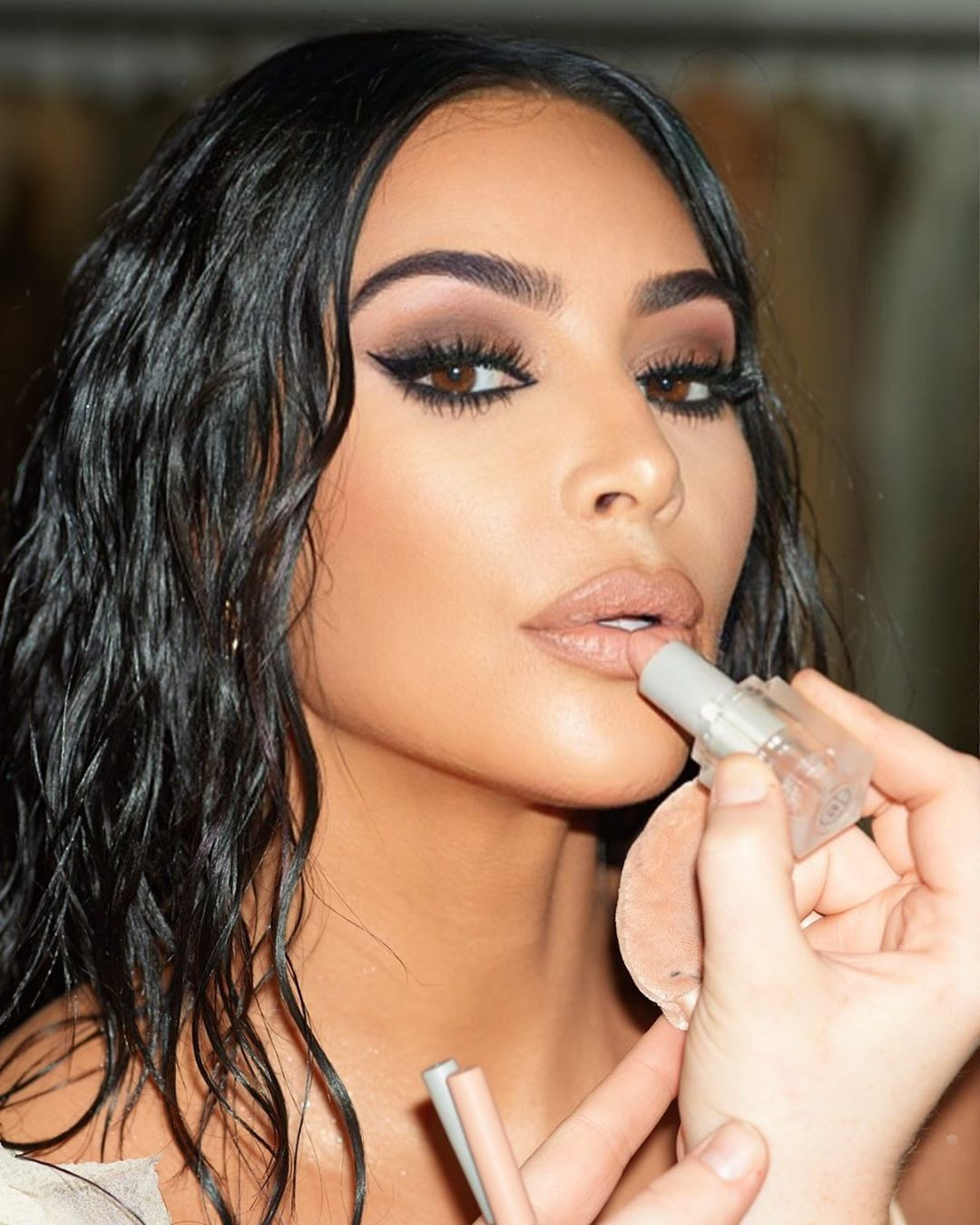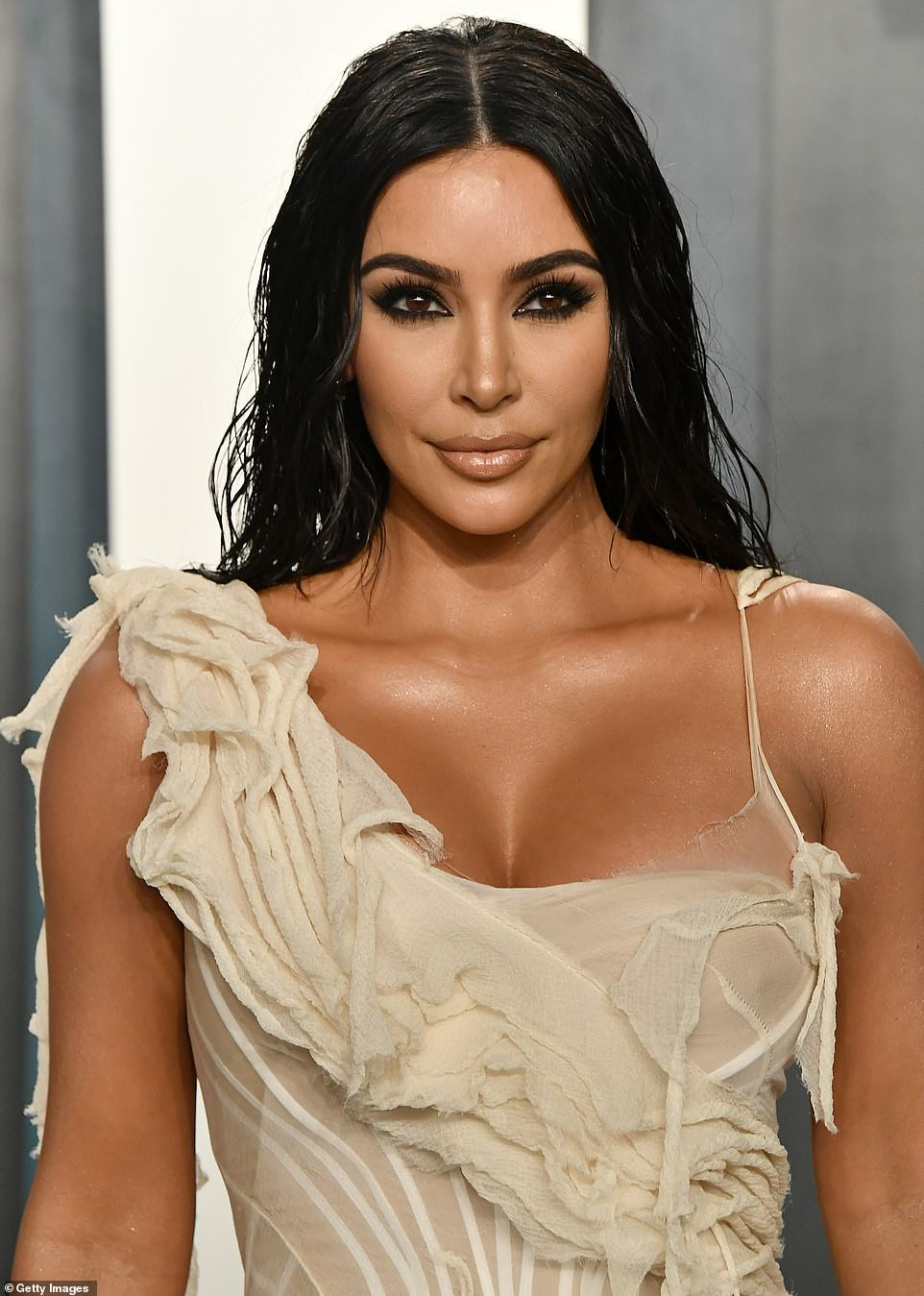 Tại sự kiện của tạp chí Vanity Fair năm nay, Kim Kardashian lựa chọn trang điểm môi màu nude với điểm nhấn là mắt khói đậm.