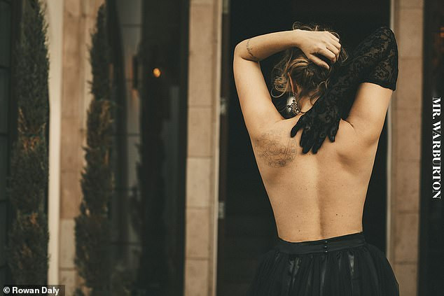 Cô hoàn toàn tự tin khi "cởi đổ" trước ống kính, lộ hình xăm lớn ở mạn sườn.