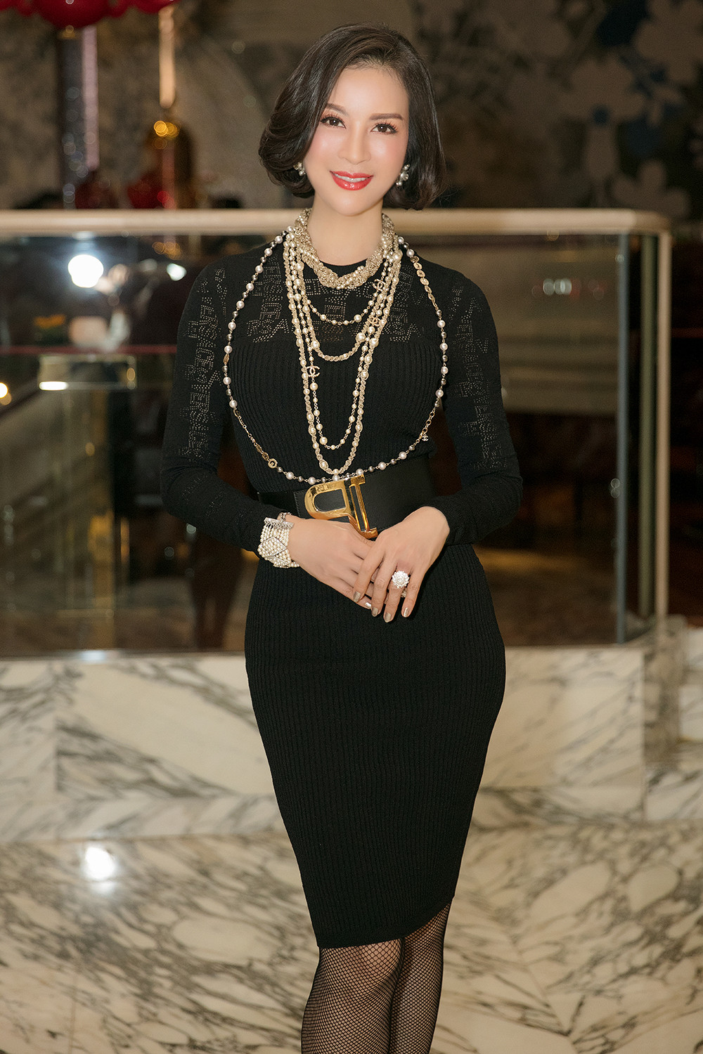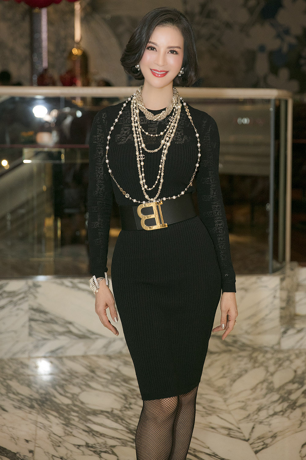 Tại sự kiện, Thanh Mai diện trang phục màu đen thanh lịch, khoe vóc dáng đáng ngưỡng mộ.