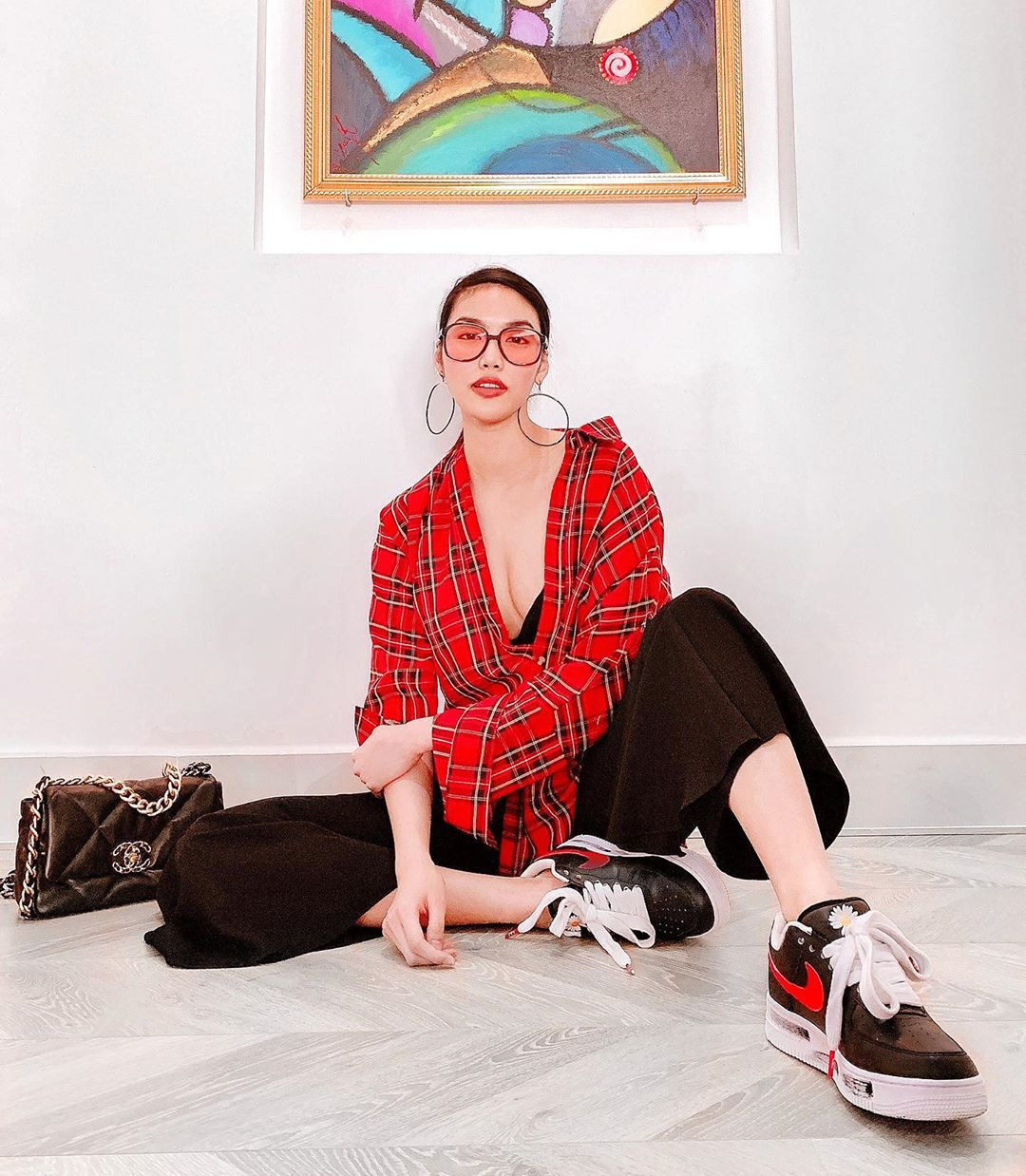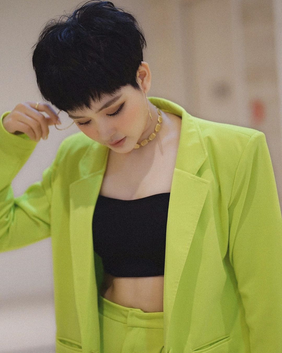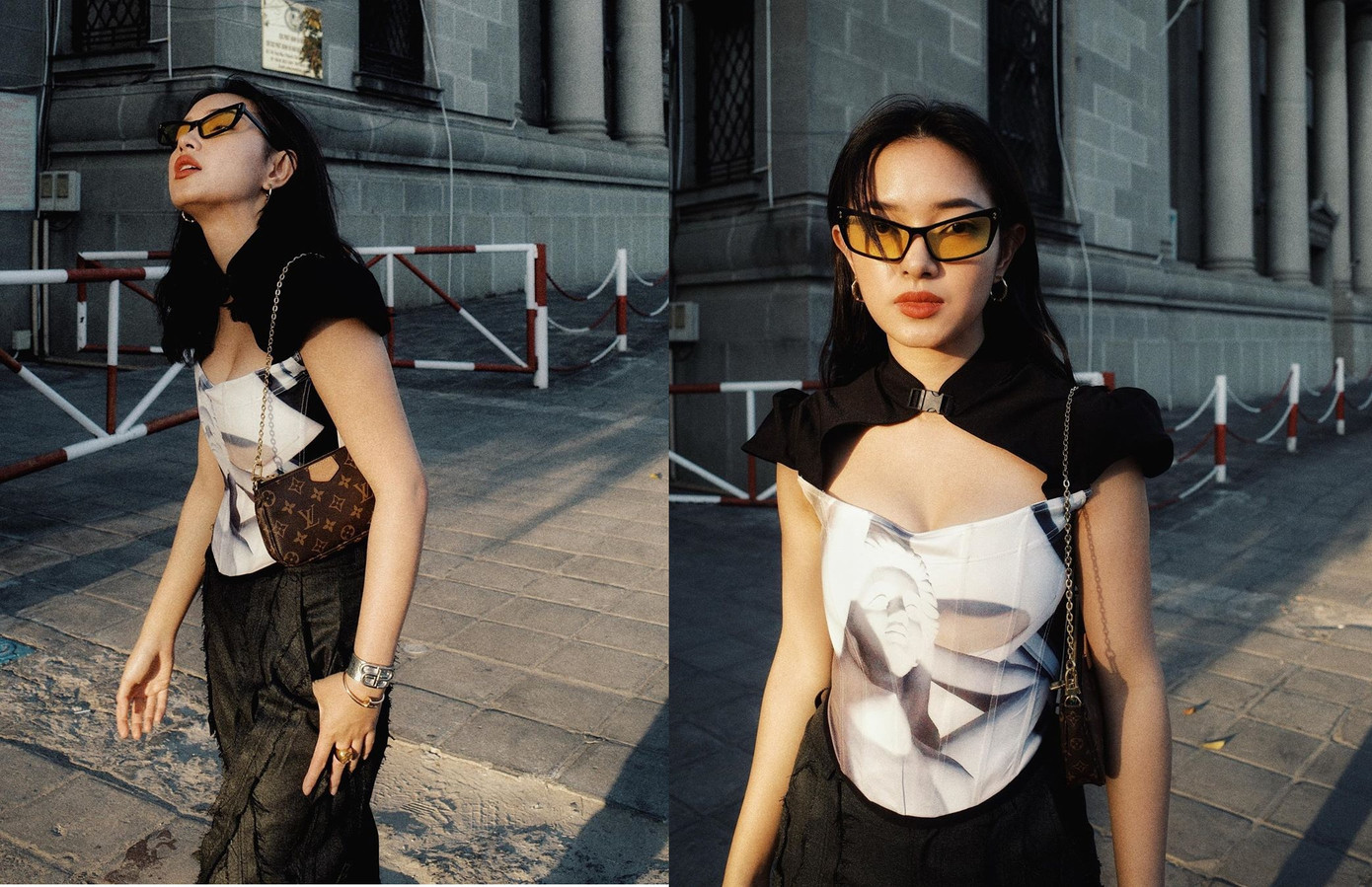 Châu Bùi xuống phố trong set đồ cá tính, nhưng cũng không quên "lấp ló" vòng một căng đầy.