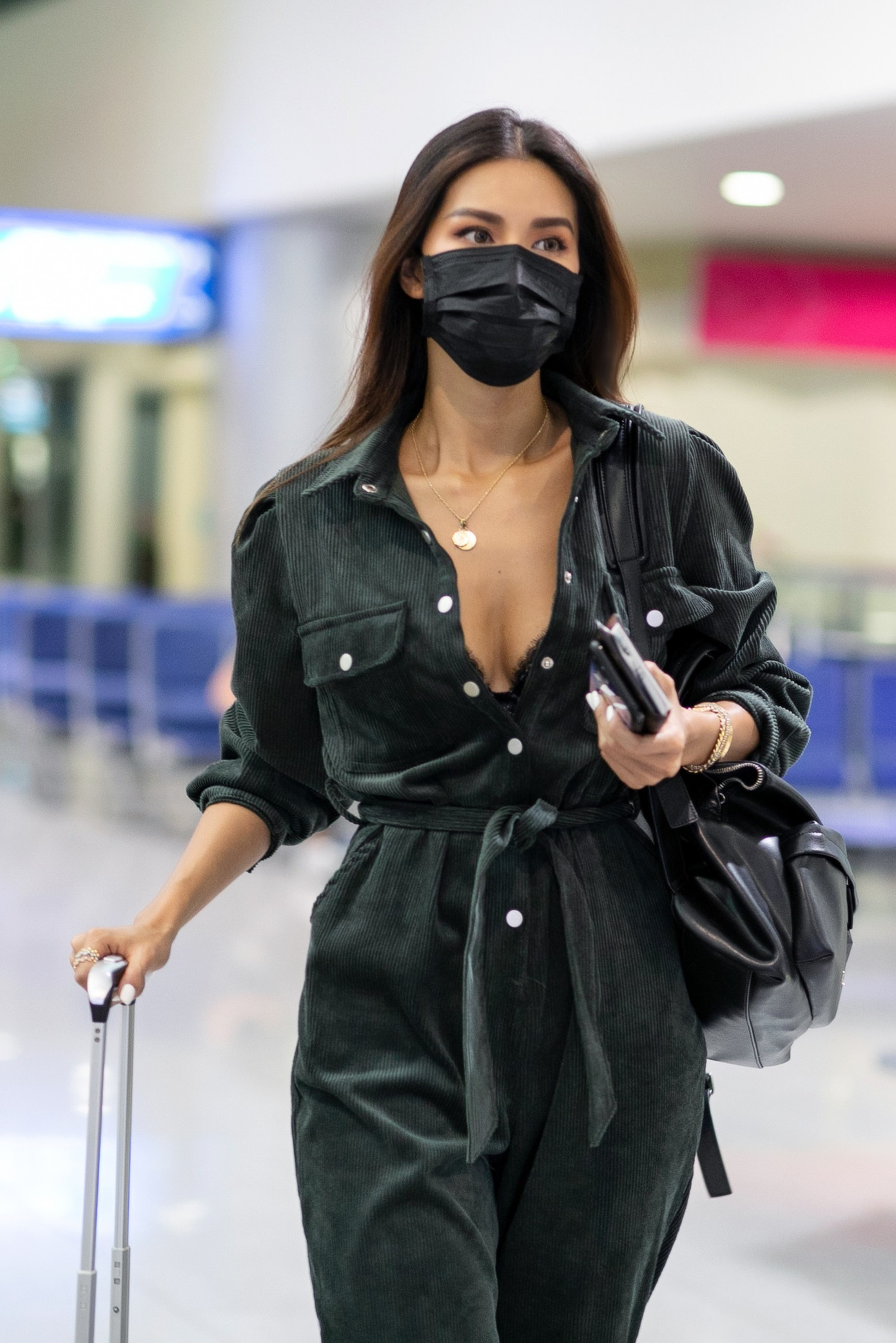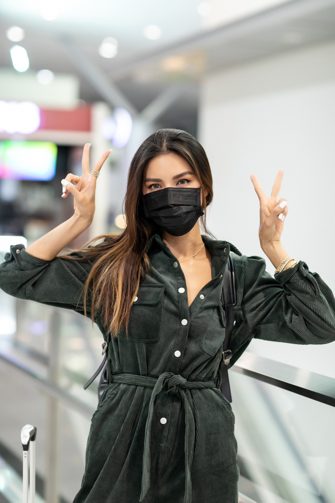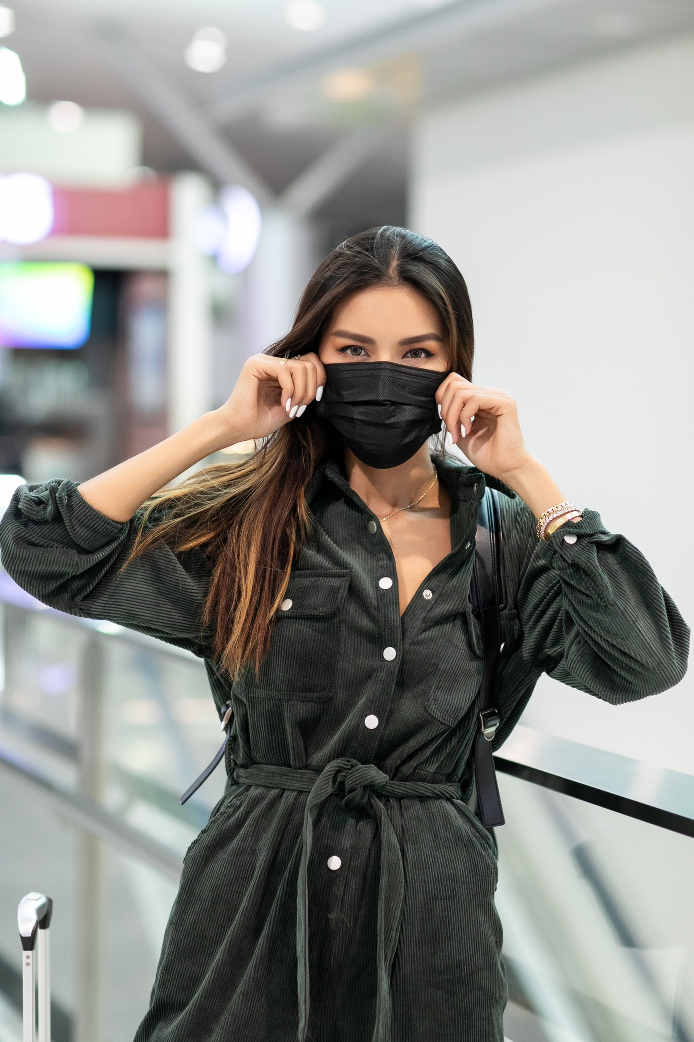 Đặc biệt, đề cao cảnh giác trong lúc dịch virus corona đang hoành hành, người đẹp không quên đeo khẩu trang kín mít.