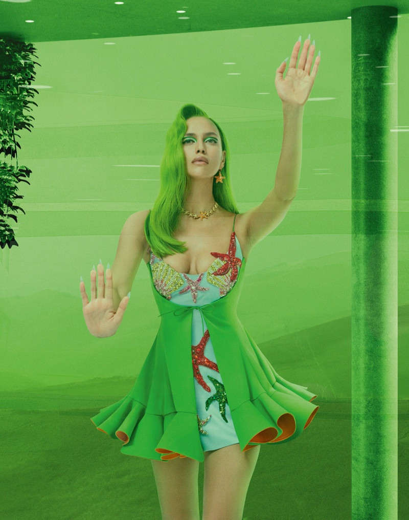 Cô vừa xuất hiện với sắc xanh nổi bật trên tạp chí Vogue Nga số mới.