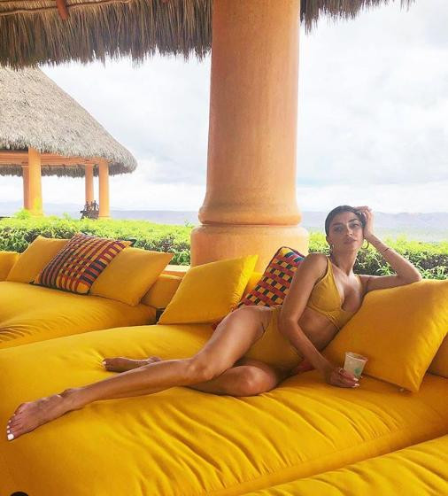 Trên Instagram cá nhân, nàng mẫu cũng thường xuyên tương tác với bạn đọc bằng những bức hình khoe vóc dáng "bốc lửa"...