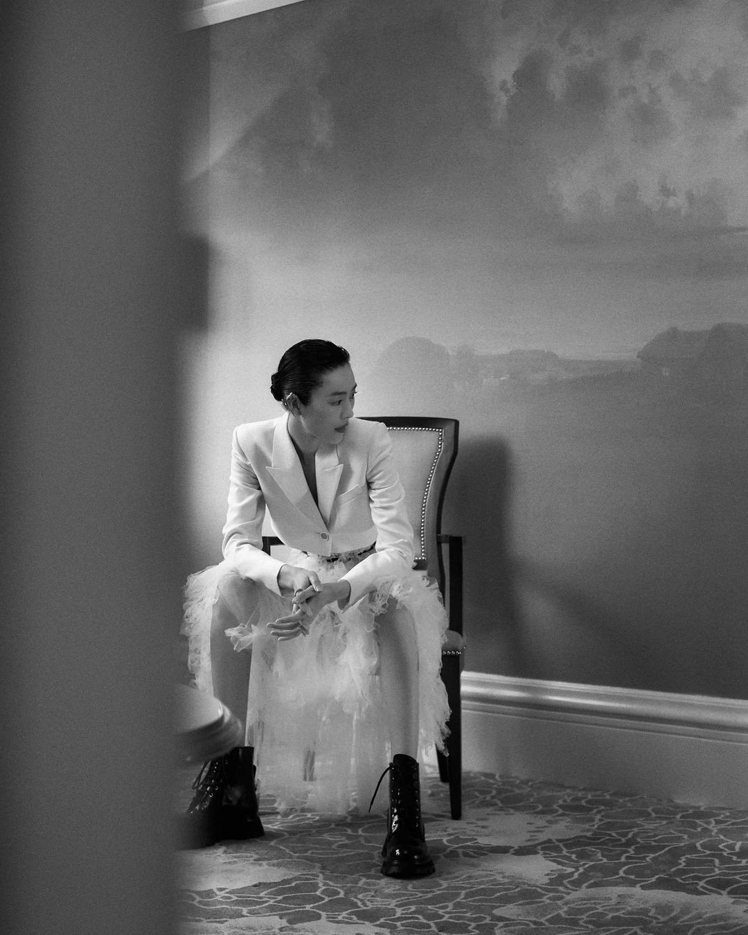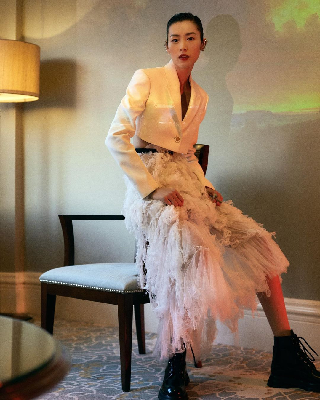 Liu Wen mặc vest dạng crop top lạ mắt tôn vòng eo "con kiến" nhỏ xíu.