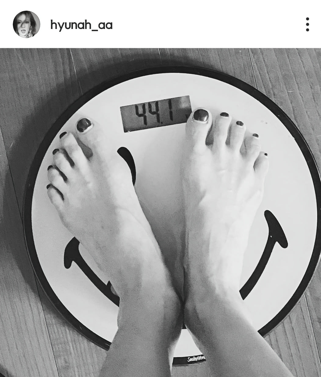 HyunA chia sẻ cân nặng hiện tại của mình là 44kg thông qua một bức ảnh trên Instagram cá nhân. Các fan của nữ ca sĩ xót xa mong rằng cô ăn uống thêm và giữ gìn sức khỏe