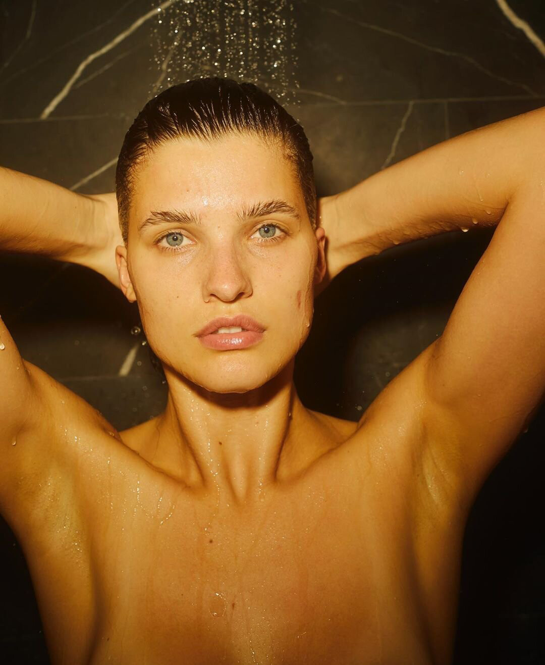 Gương mặt ấn tượng đậm chất mốt, đôi lông mày rậm, ánh mắt xanh như gây mê người nhìn