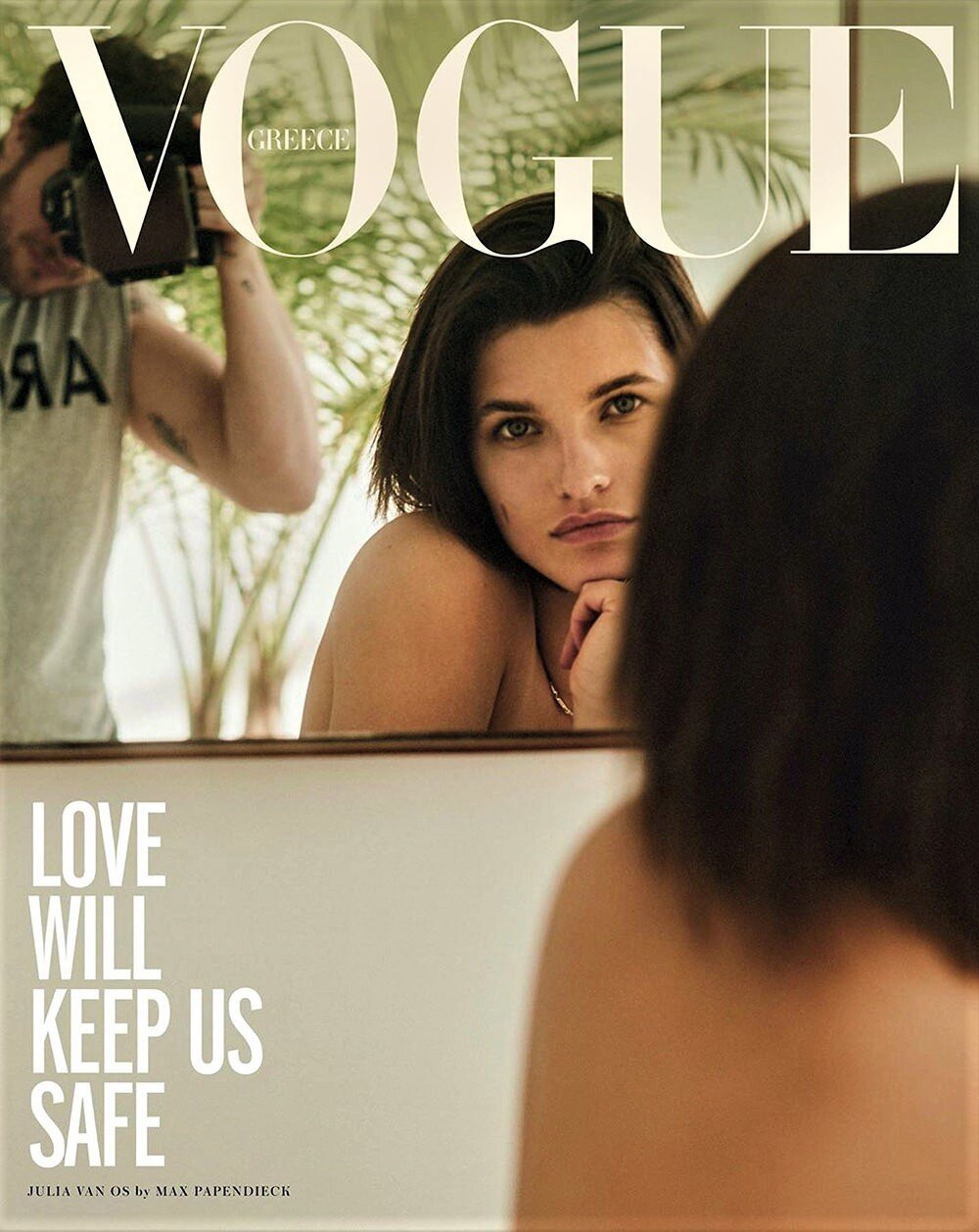 Bức ảnh bìa với cảnh Julia Van Os ngồi trước gương, ấn tượng nhất là đôi mắt nhìn xa xăm đầy cuốn hút