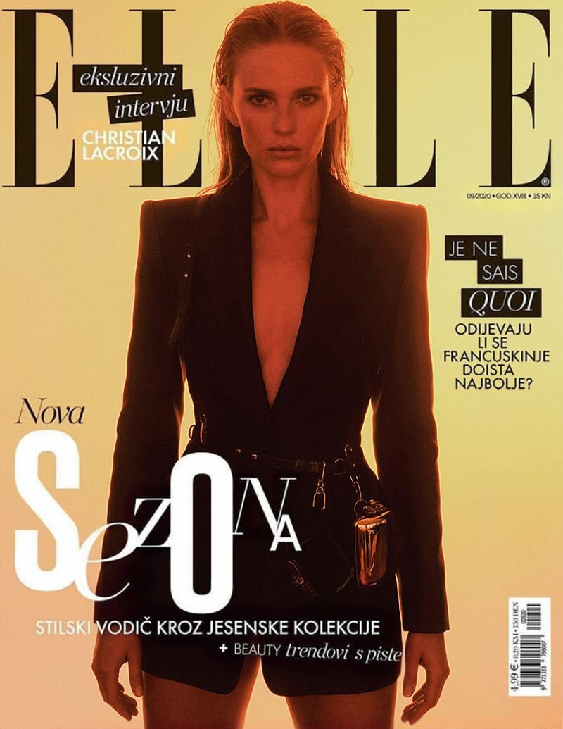 Trang bìa tạp chí Elle Croatia số tháng 9 là sự hiện diện của Anne Vyalitsyna trong trang phục đen từ Alexander McQueen.