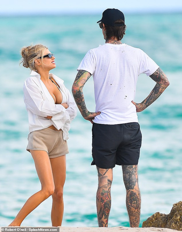 Mỹ nhân tóc vàng đi nghỉ ở biển cùng bạn trai thợ xăm Nathan Kostechko.