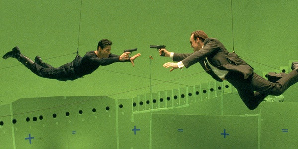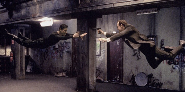 Diễn viên được treo ngược trong cảnh bắn súng vô trọng lực ở The Matrix (Ma trận).