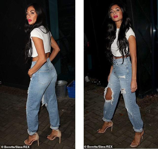 Kết thúc ghi hình, Nicole thay bộ cánh gợi cảm bằng set đồ trẻ trung hơn, gồm áo crop-top trắng và quần jeans rách.